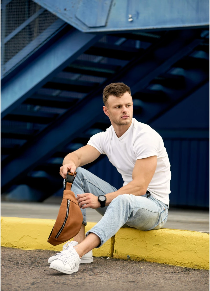 Чоловіча бананка Sambag Soho Bss коричневого кольору виконана з натуральної шкіри. Вона має текстильну водовідштовхуючу підкладку, яка також бере на себе навантаження, завдяки чому значно збільшується термін експлуатації. Всередині сумка поділена на три відділення. Оснащена металевою блискавкою і бігунками з фіксаторами. Ремінець регулюється від 91 до 130 см.