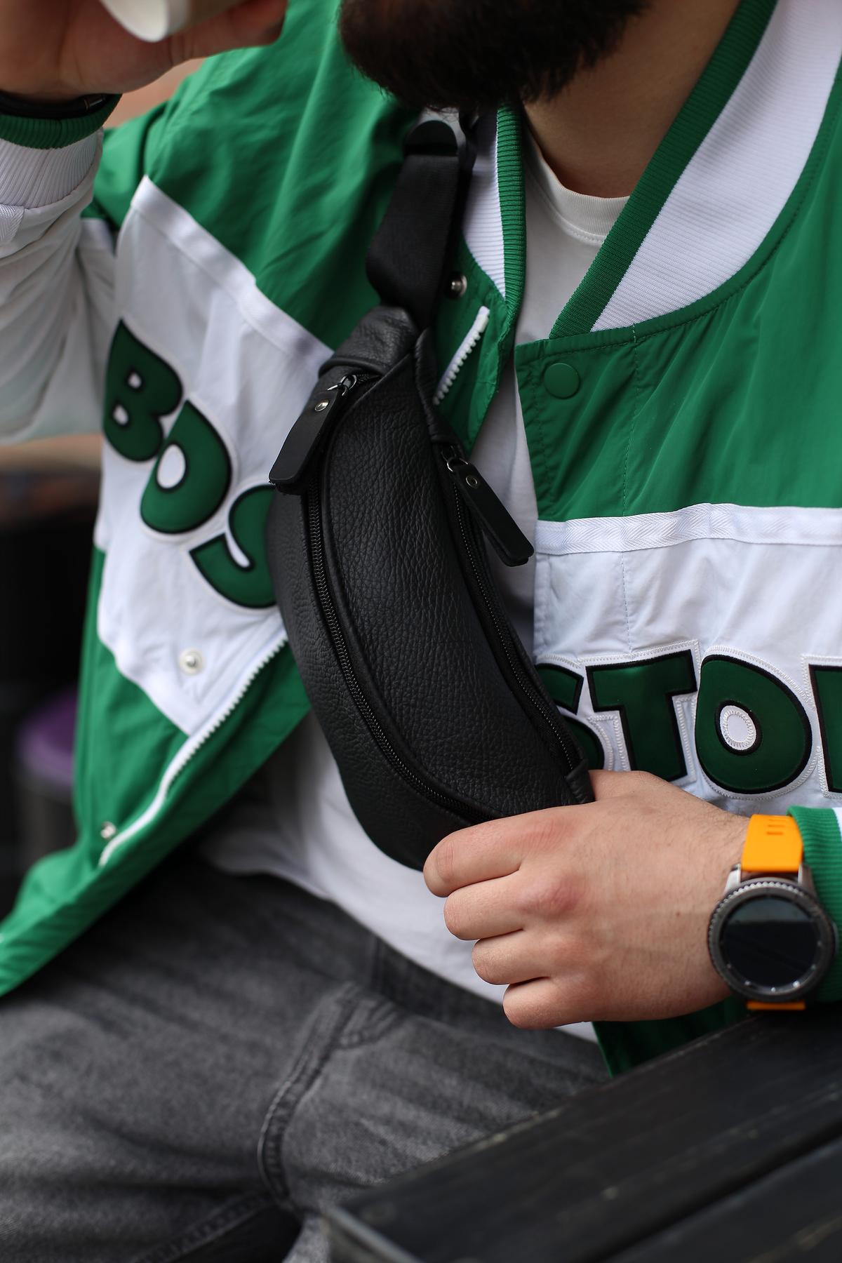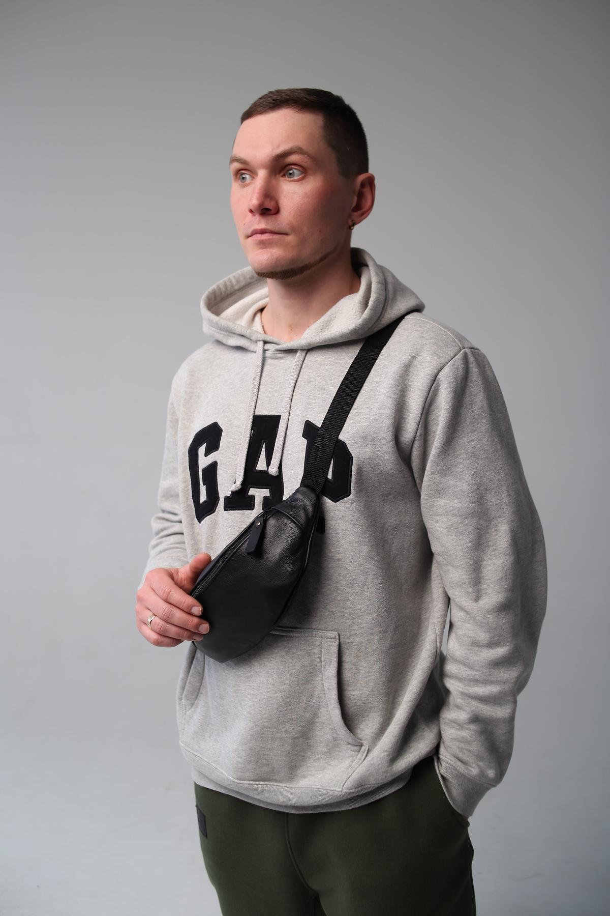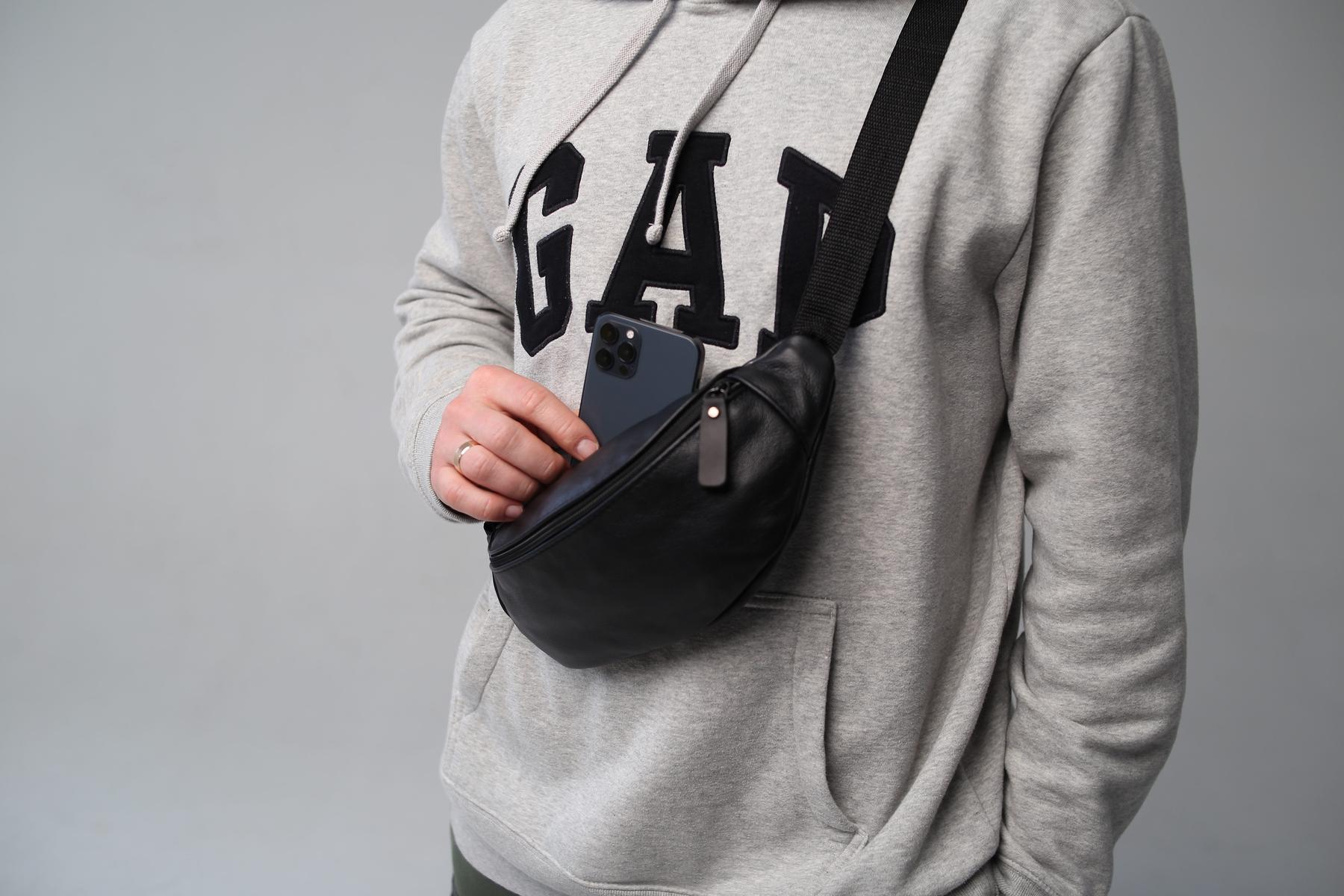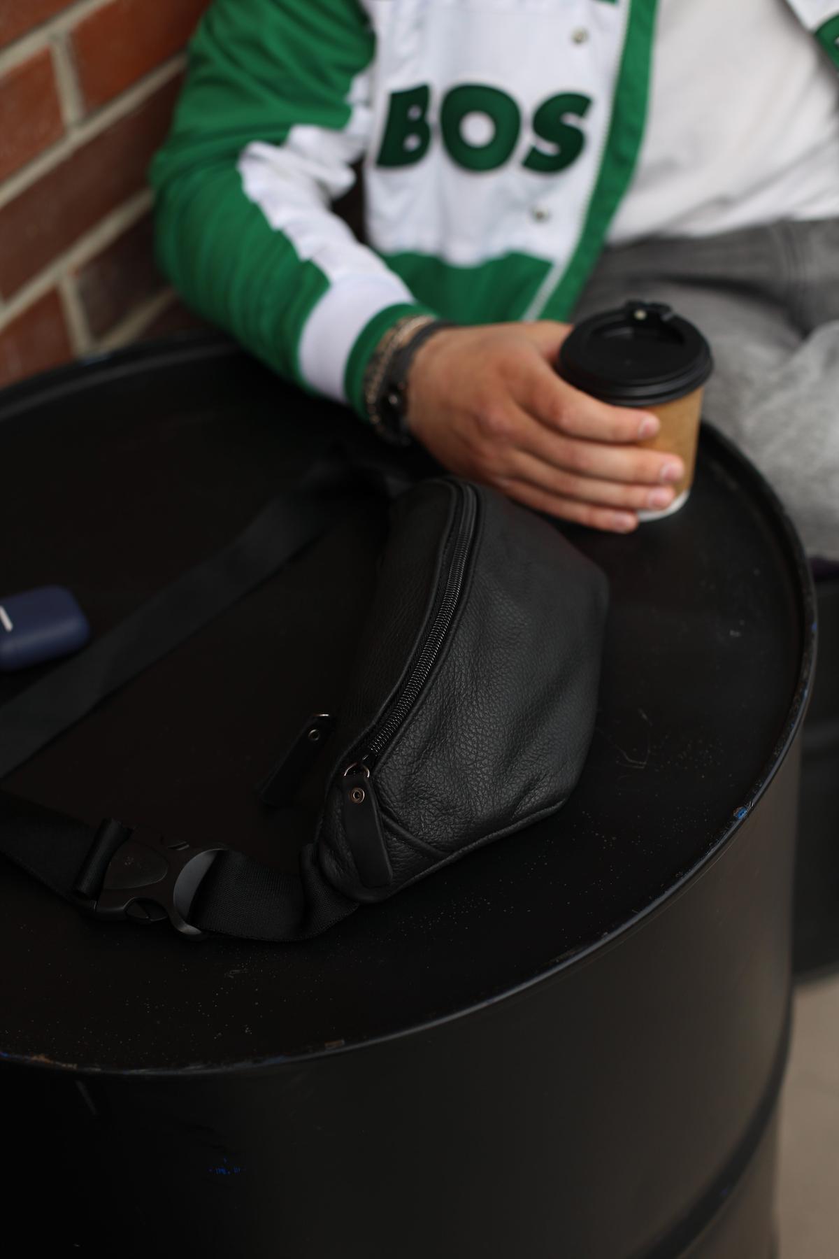 Чоловіча бананка Skill чорного кольору виконана із натуральної шкіри КРС. У бананки одне основне відділення, а також додаткове ззаду, куди можна покласти телефон або документи. Бананка оснащена пластиковими блискавками. Ремінець регулюється до 125 см.