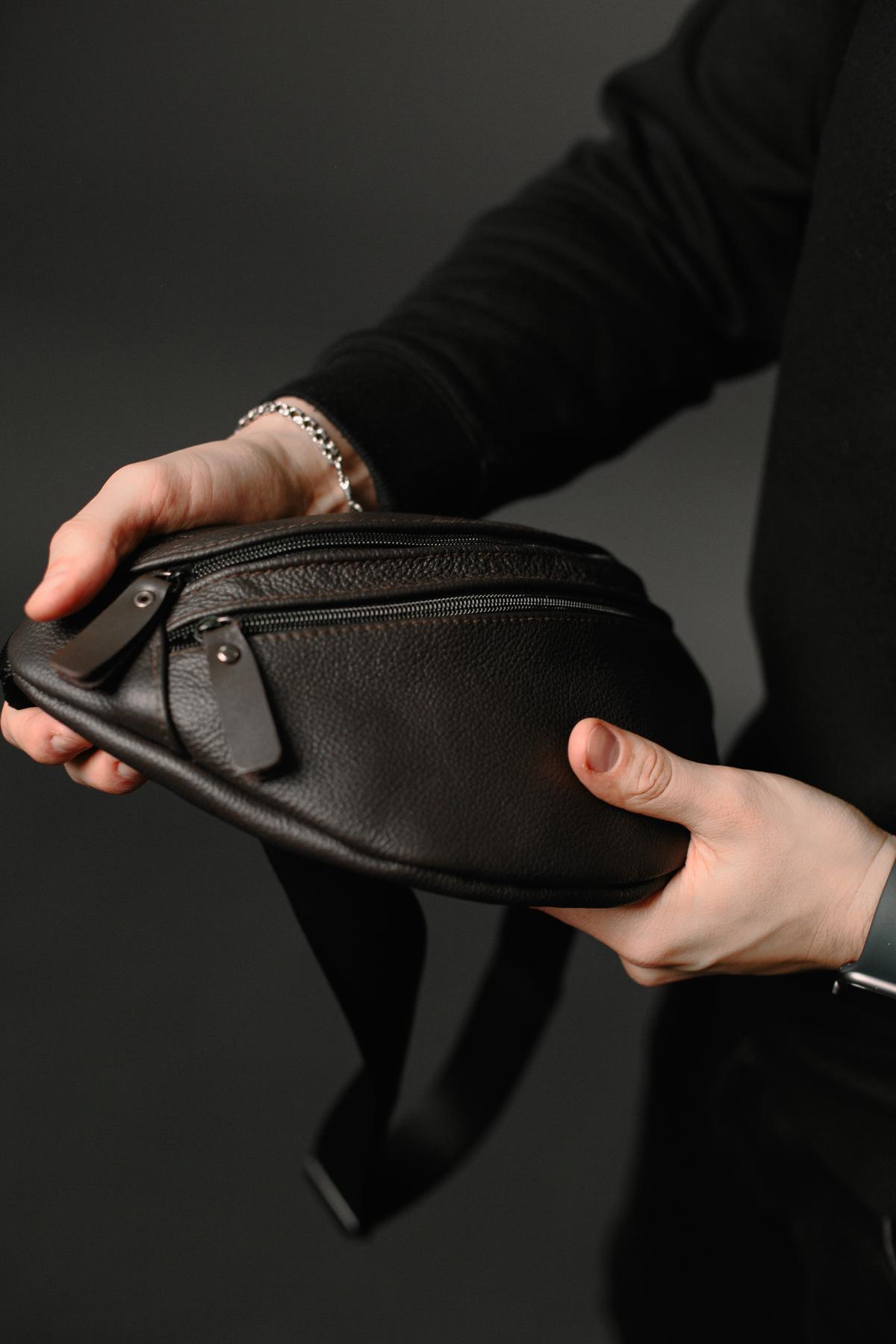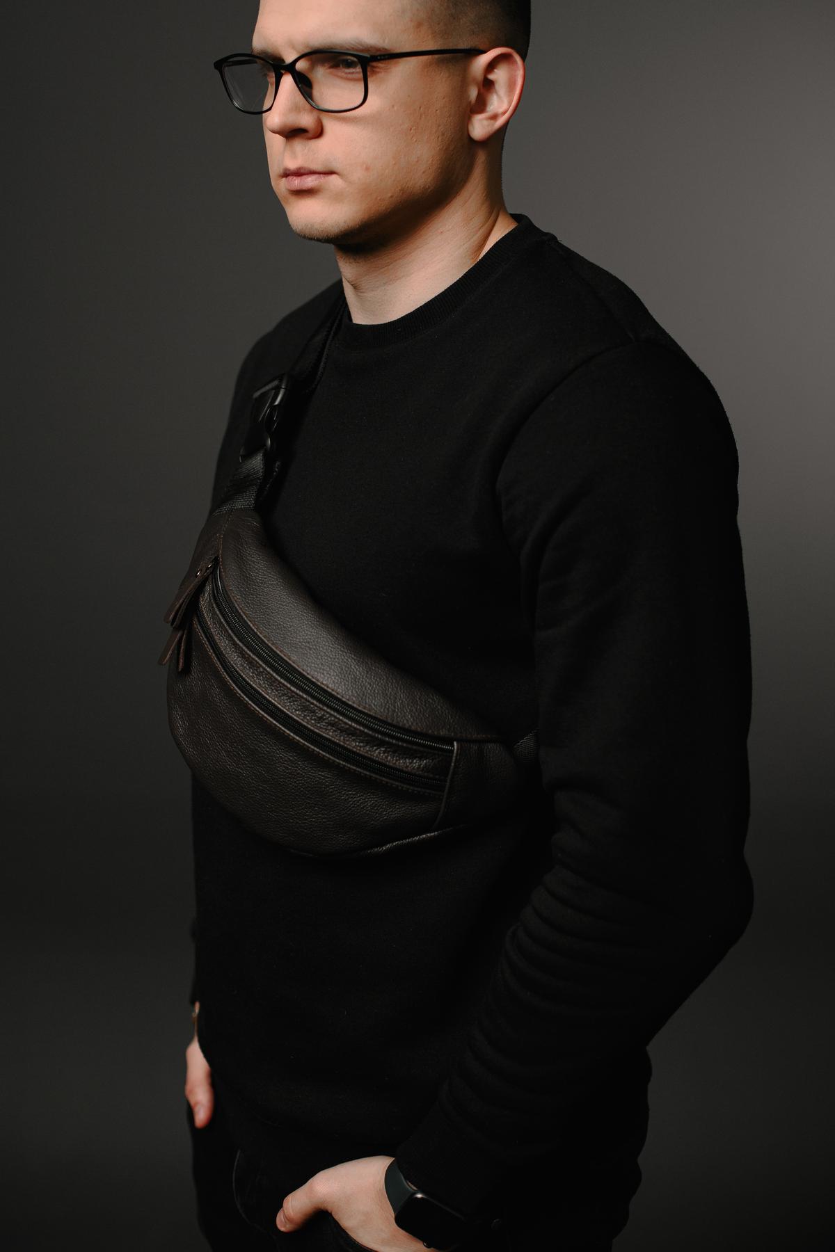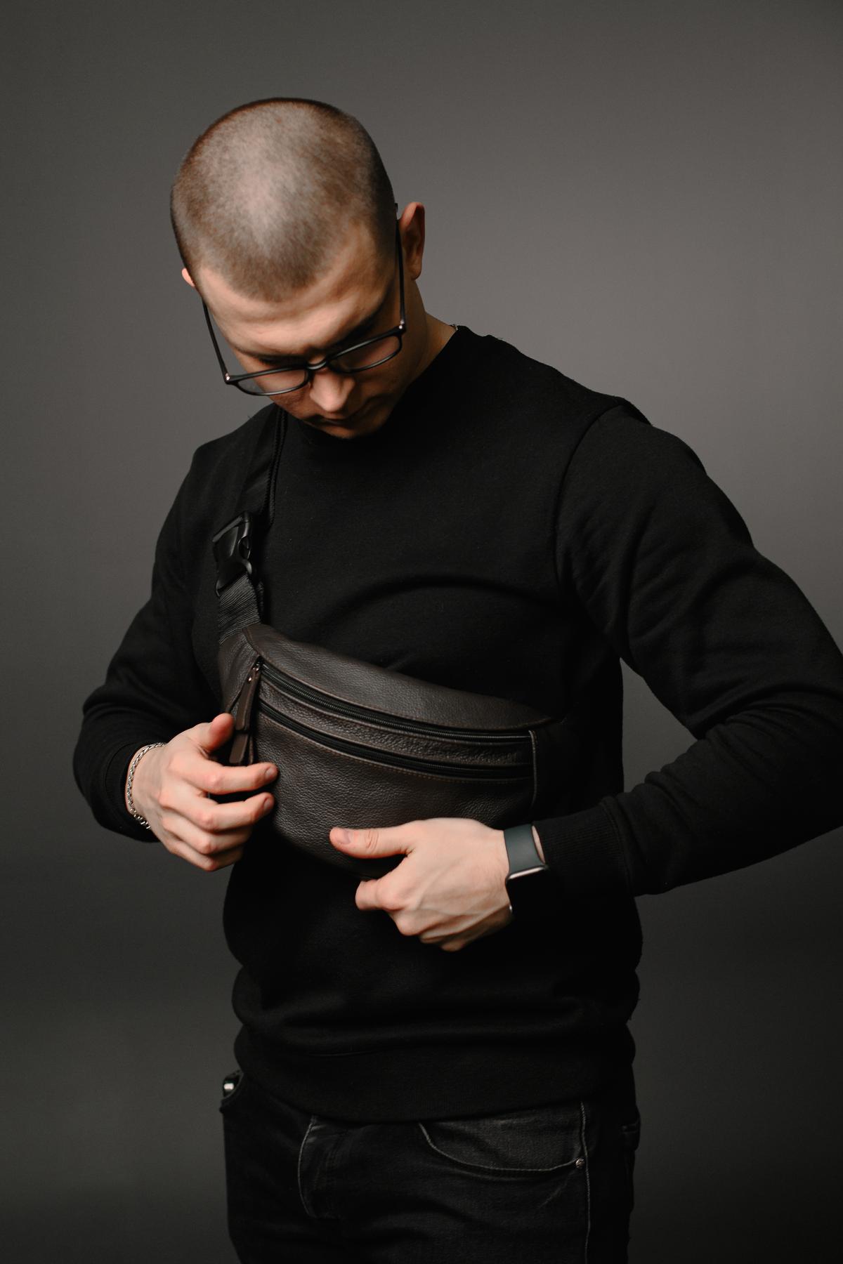 Чоловіча бананка Skill коричневого кольору виконана із натуральної шкіри КРС. У бананки одне основне відділення, а також два додаткових спереду та ззаду, всі вони на пластиковій блискавці. Ремінець регулюється до 120 см. Бананка досить велика, тому ви зможете помістити в неї всі необхідні речі.
