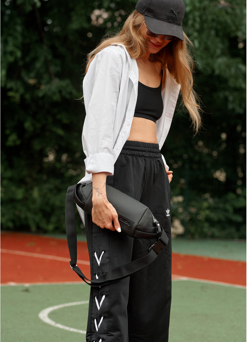 Жіноча бананка Sambag Holster MSH чорного кольору з перфорацією виконана із якісної екошкіри. В середині підкладка із матеріалу оксфорд. Підкладка бере на себе навантаження, завдяки чому термін служби бананки значно збільшується. Сумка оснащена металевою блискавкою та металевими бігунками з фіксаторами, тому самостійно сумка відкриватись не буде. Ззаду бананка має додаткову кишеню на блискавці. Всередині одне основне відділення з декількома кишенями. Ремінець регулюється від 100 до 145 см.