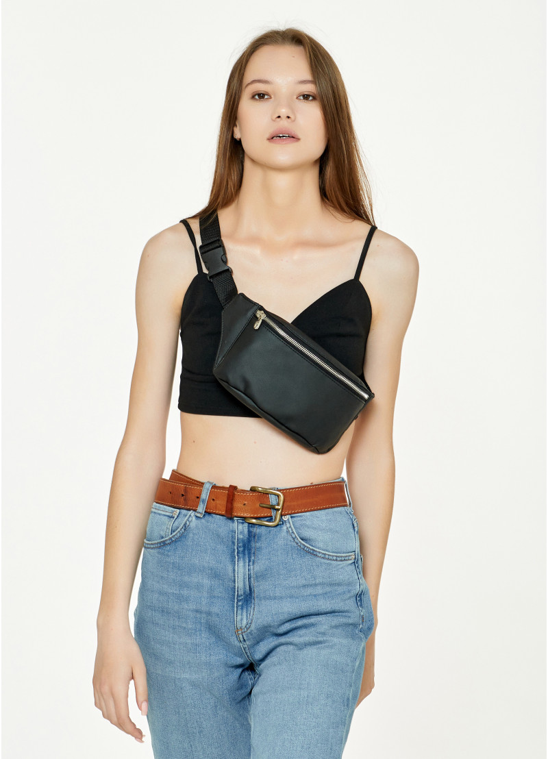 Жіноча бананка Sambag Tirso Mss чорного кольору виконана з екошкіри. В середині підкладка з матеріалу оксфорд. Підкладка бере на себе навантаження, завдяки чому термін служби бананки значно збільшується. Вона має металеві блискавки з металевими бігунками з фіксаторами, тому самостійно сумка відкриватись не буде. Ззаду бананка має додаткове відділення на блискавці. Всередині сумки декілкька кишень. Ремінець регулюється від 86 см до 123 см, завдяки чому її можна зручно носити як на поясі, так і через плече.