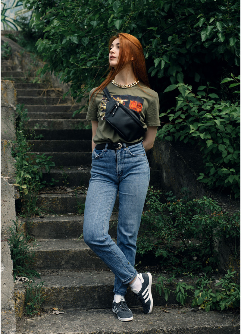 Жіноча бананка Sambag Tirso Mth чорного кольору виконана з екошкіри. В середині підкладка з матеріалу оксфорд. Підкладка бере на себе навантаження, завдяки чому термін служби бананки значно збільшується. Вона має якісну пластикову блискавку з металевими бігунками з фіксаторами, тому самостійно сумка відкриватись не буде. Ззаду бананка має додаткове відділення на блискавці. Всередині сумки декілкька кишень. Стильний ремінець із екошкіри, надійно прикріплений до боків шкіряними трикутниками. Ремінець регулюється від 86 см до 123 см, завдяки чому її можна зручно носити як на поясі, так і через плече.