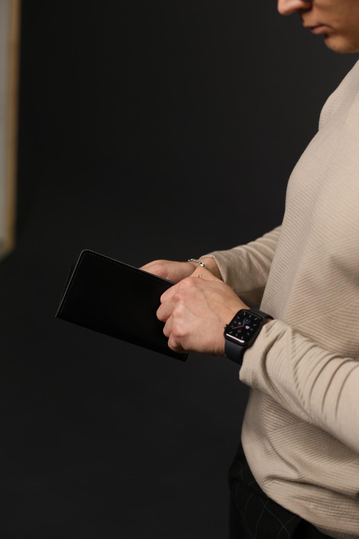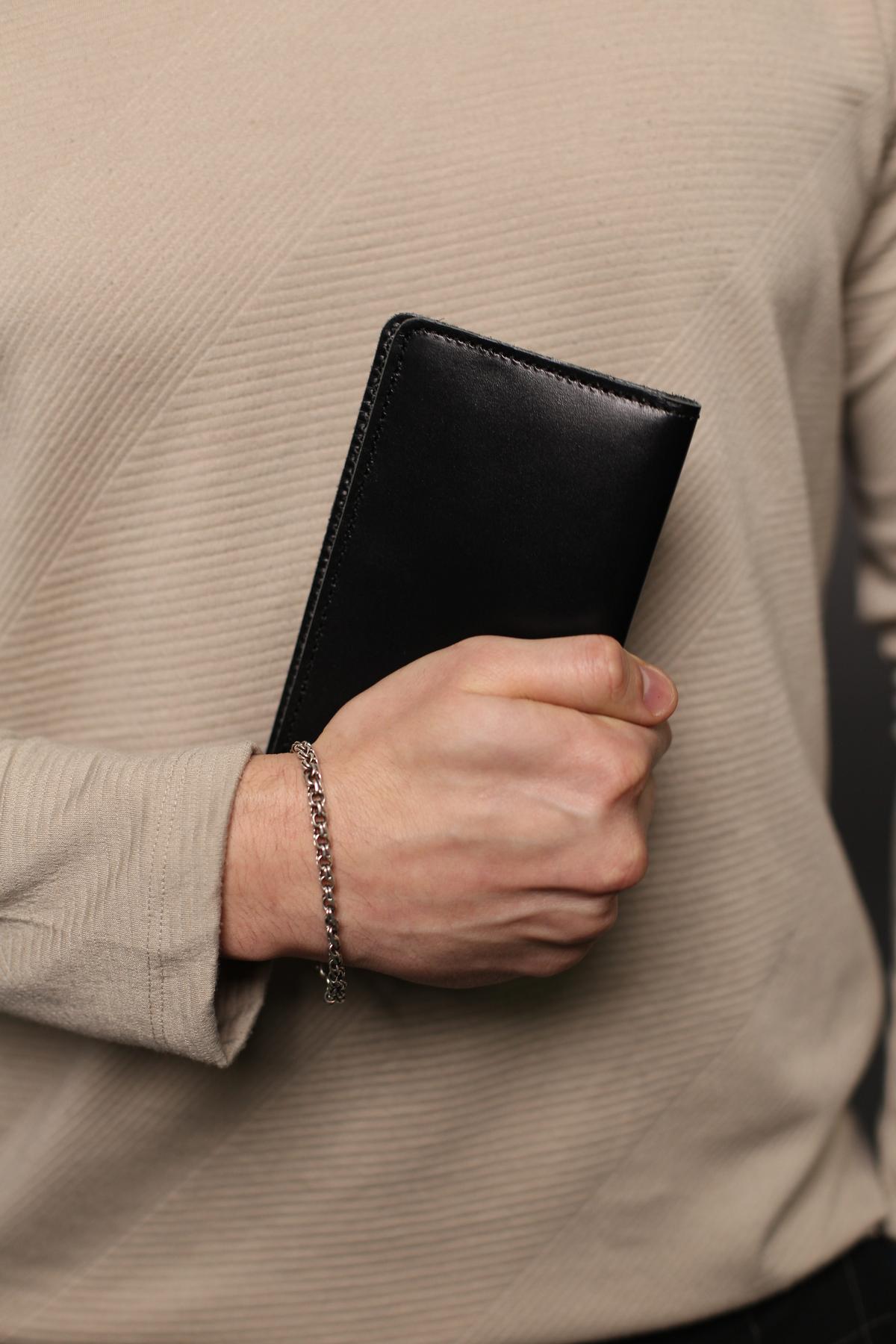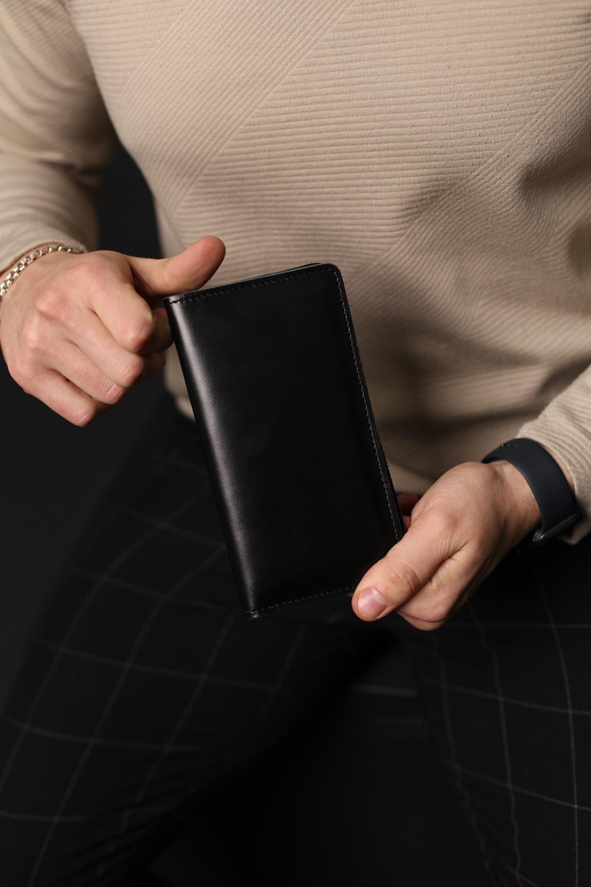 Портмоне чоловіче Skill чорного кольору виготовлене з натуральної шкіри. Портмоне має три основні відділення для купюр, 6 осередків для карток та додаткове відділення на металевій блискавці.