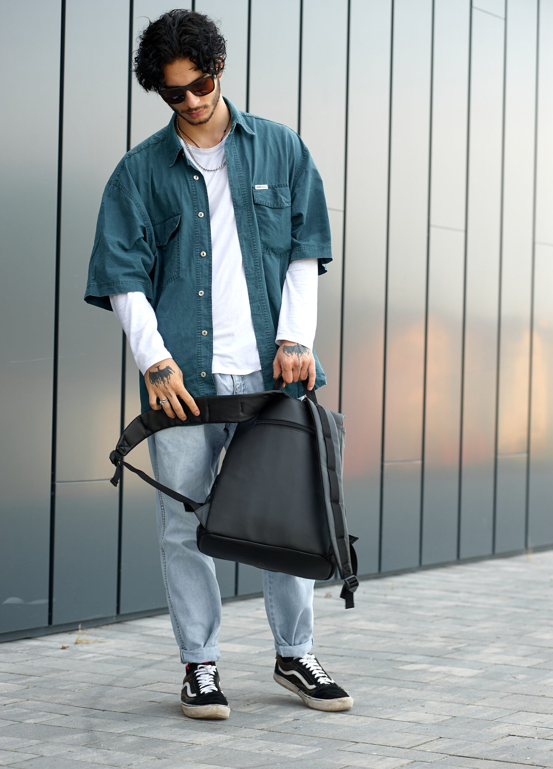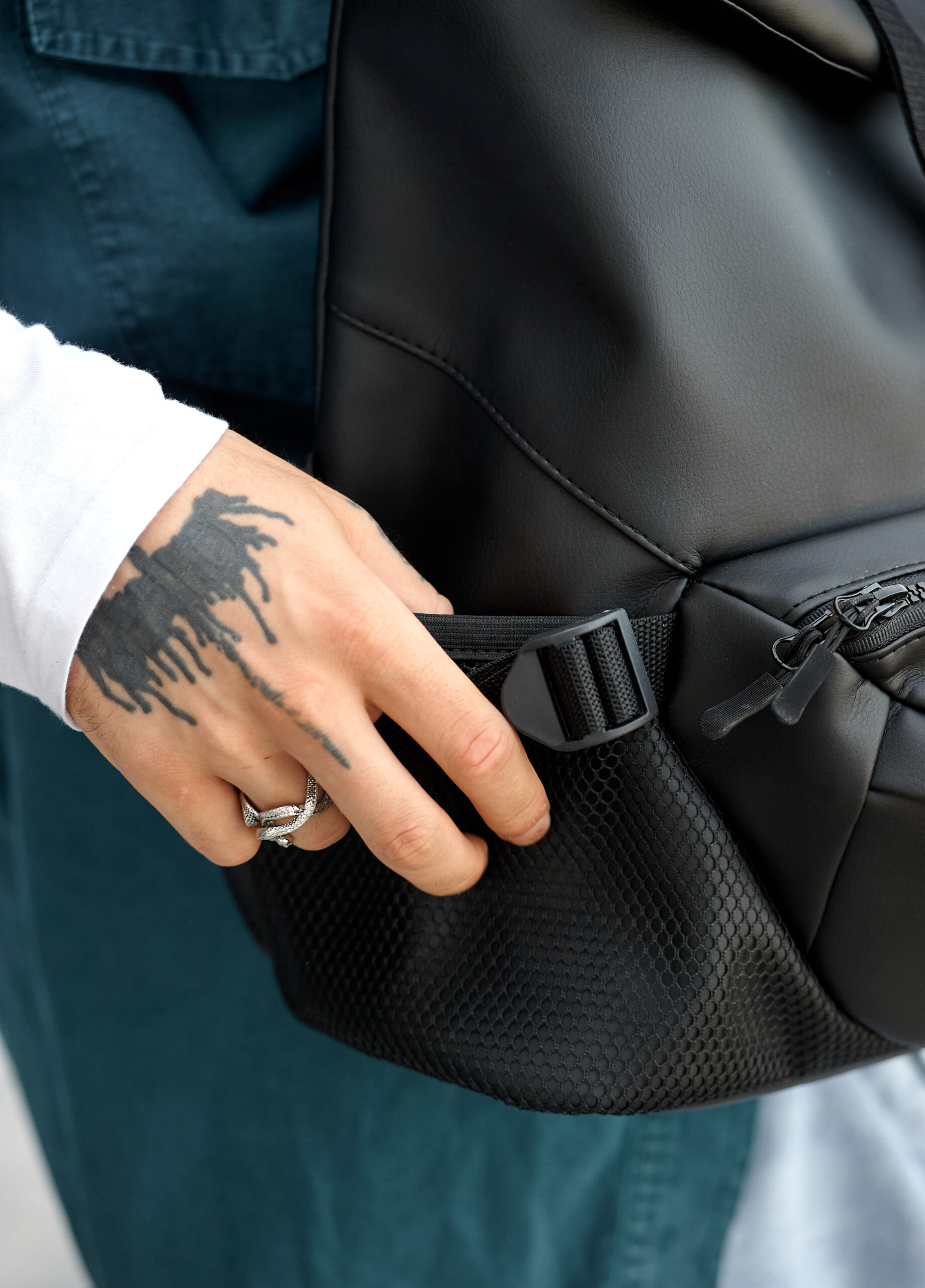 В середині міцний нетканний чорний матеріал, з ним Ви можете не переживати, що поклали в середину ключі, відкриті ручки чи олівці, тощо, адже він, на відміну від дешевої підкладки, практично не рветься і легко чиститься.