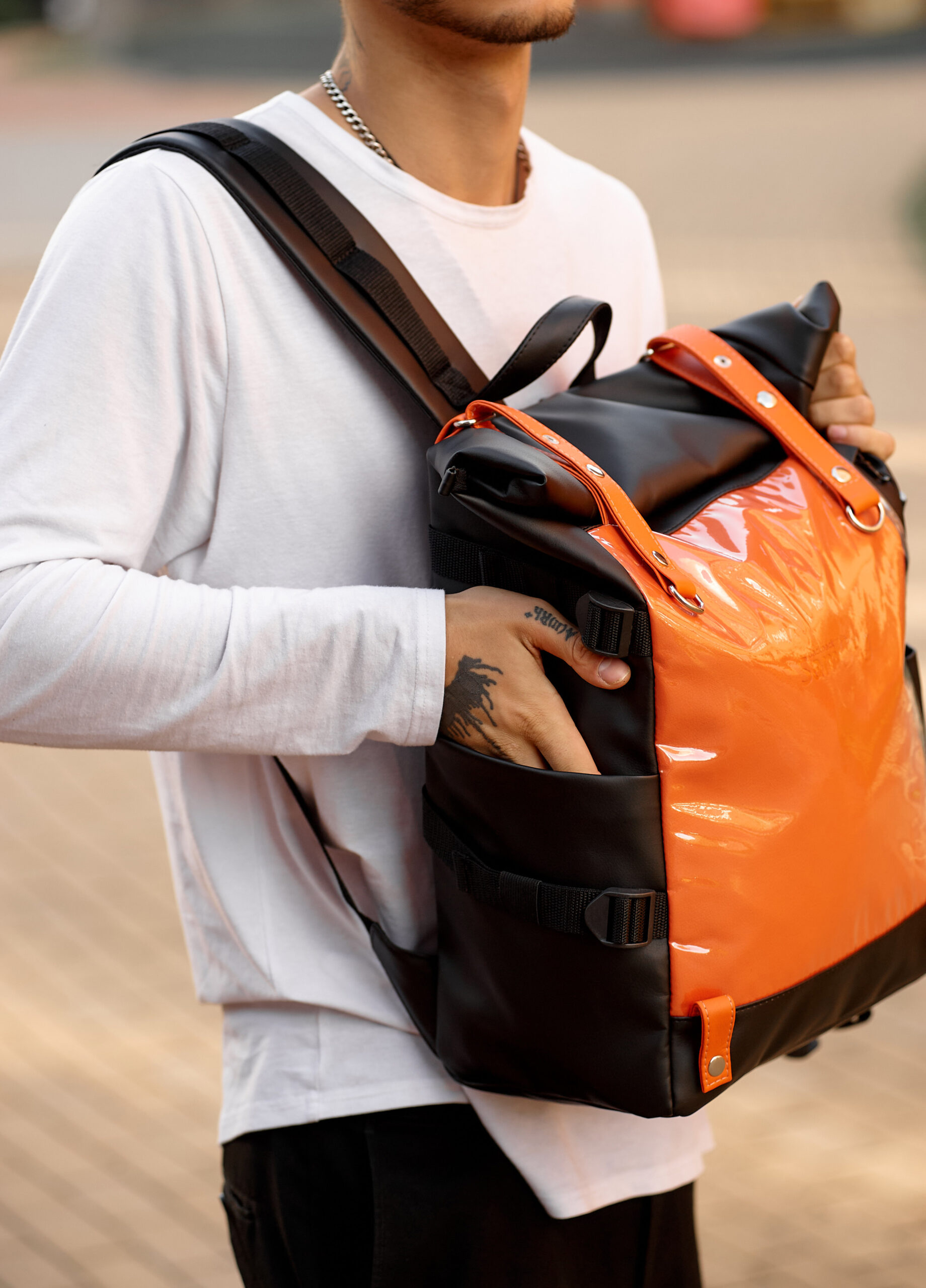 Рюкзак чоловічий Sambag RollTop Hacking чорний з помаранчевим