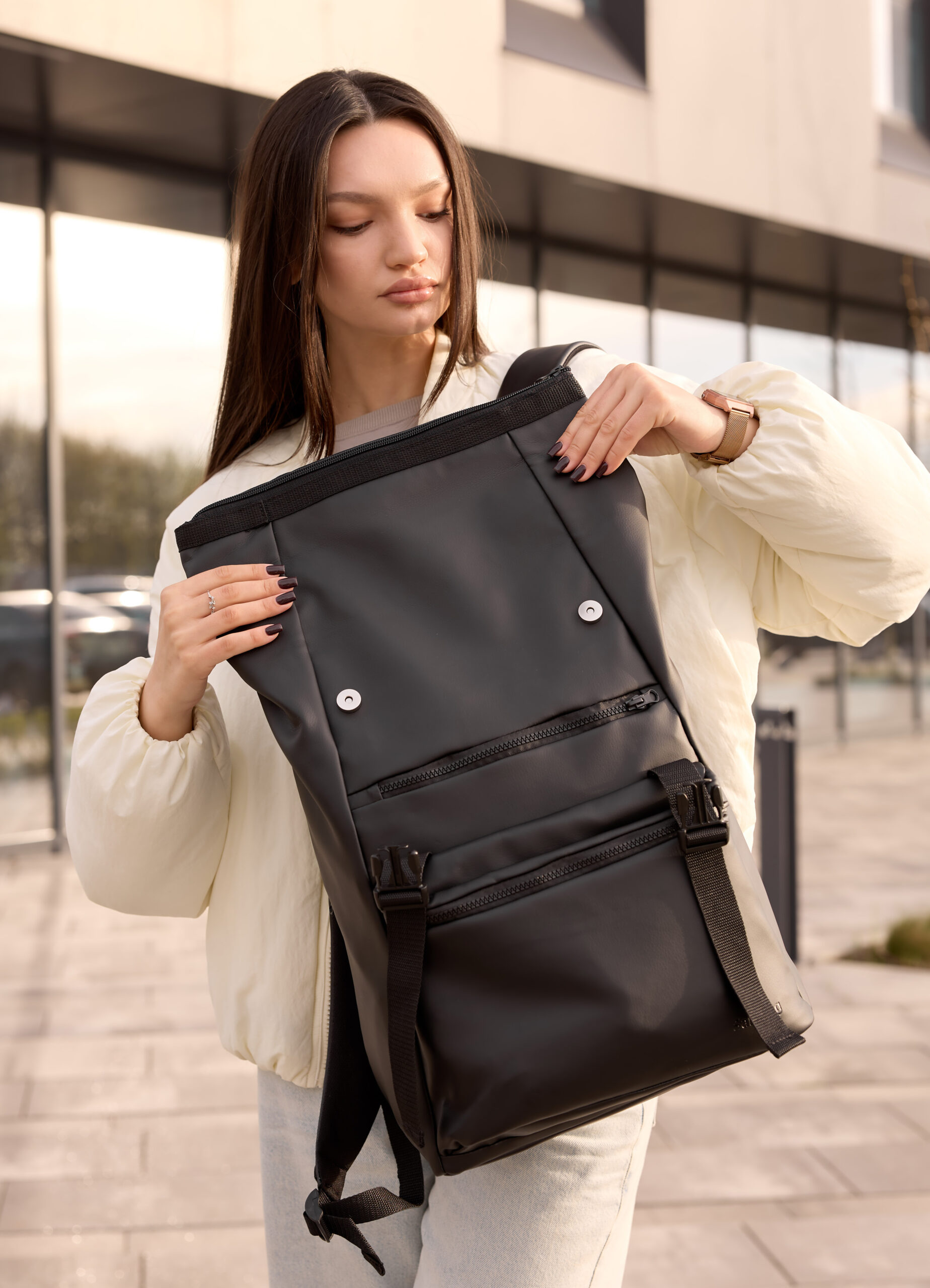 Жіночі рюкзаки колекції RollTop чудово підійдуть для будь-яких цілей, тому що їх розмір можна регулювати.