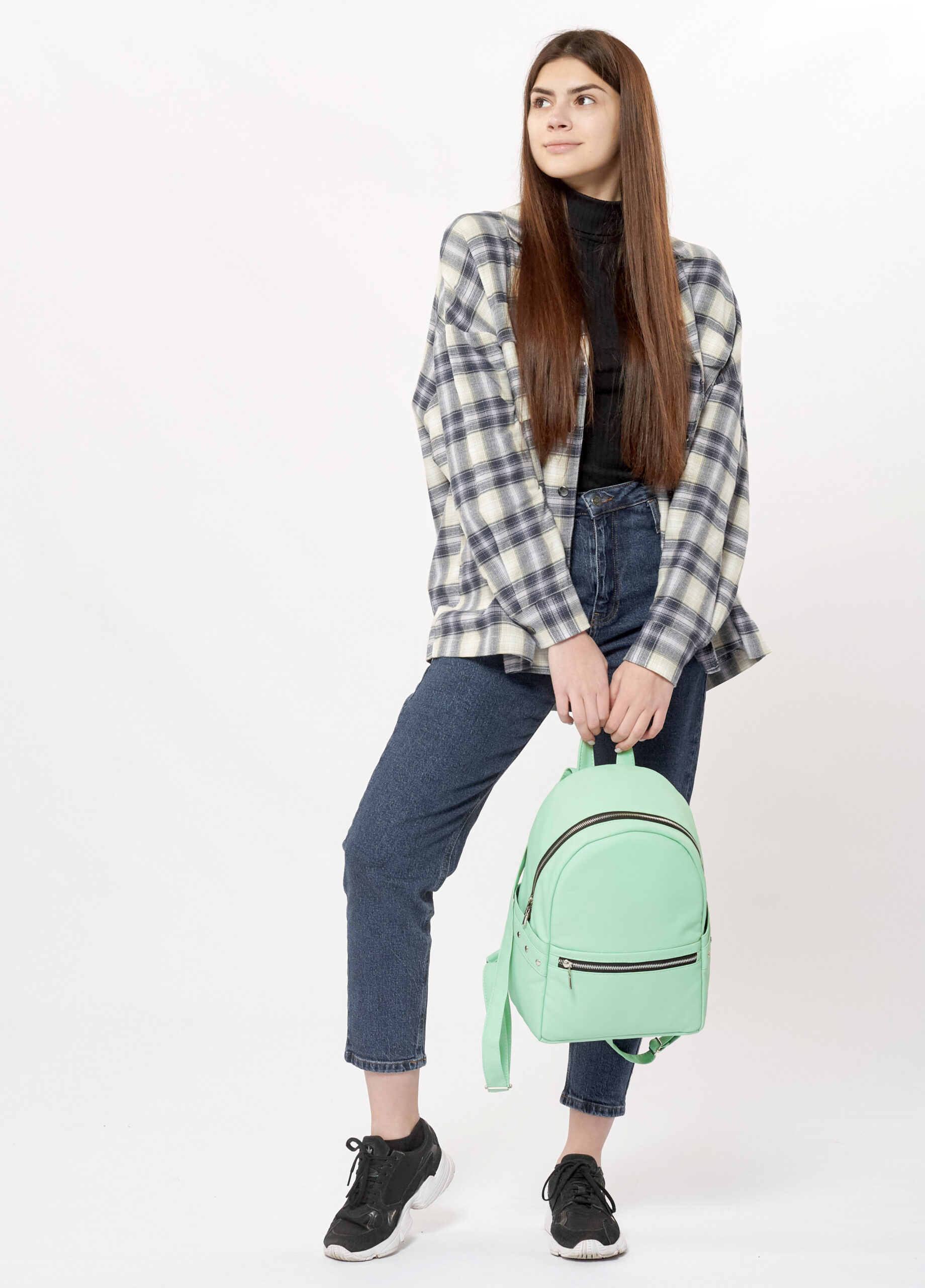 Функціональність: ззовні рюкзака одна кишеня на блискавці. Дві відкритих кишені по боках. Кишеня на блискавці по спинці. Всередині основного відділення велика кишеня по спинці на гаджет, офісні документи, тощо. Також дві менших кишені з іншого боку, одна з яких на блискавці. Для прикладу, окремо в рюкзак може поміститись спортивне взуття, пляшка 1,5 літри, невелика парасоля, малий ноутбук або планшет до 12 дюймів, вітровка або кофта.