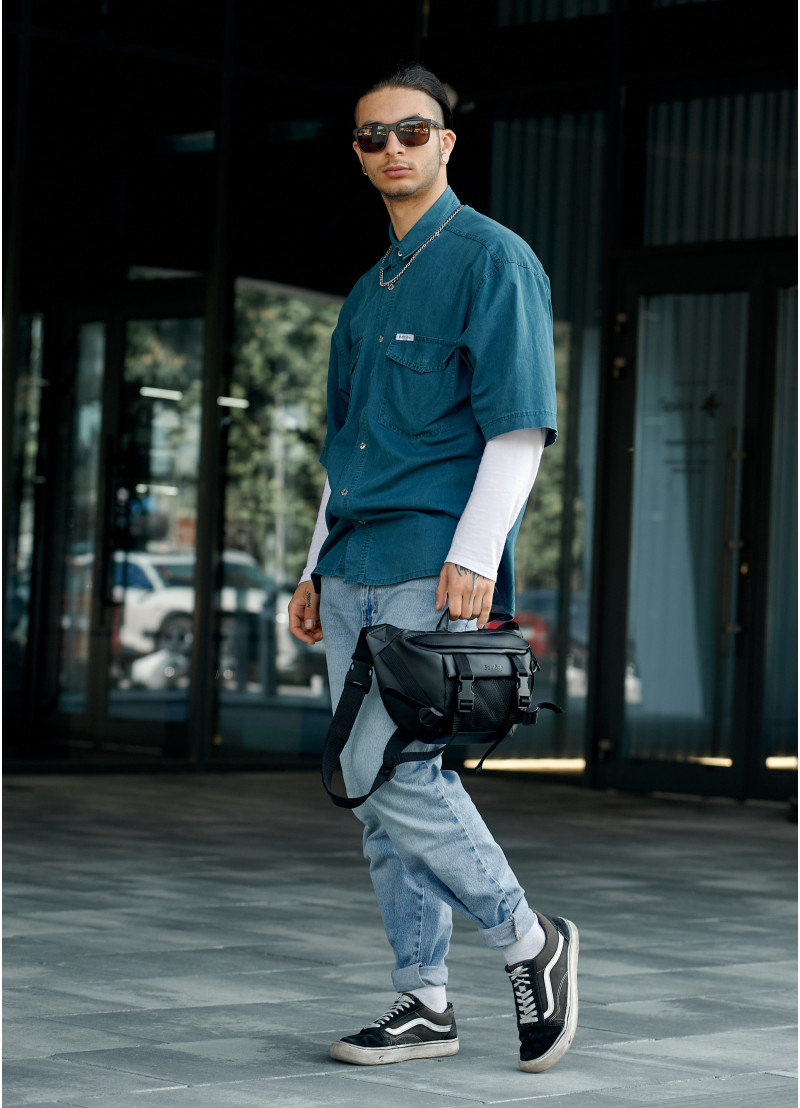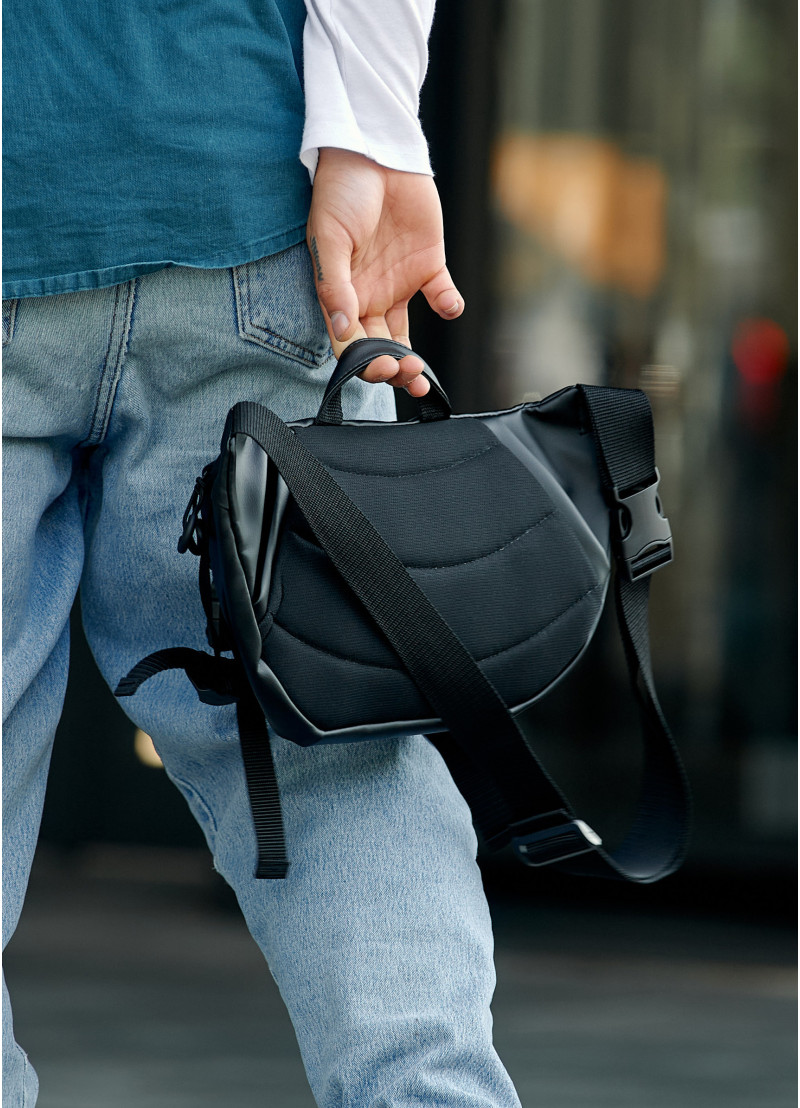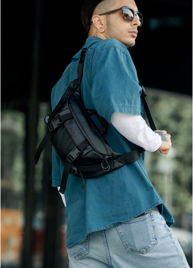 Чоловіча сумка-бананка Sambag Dynamicdart чорного кольору має 9 відділень та виконана з якісного поліестеру. В середині підкладка з матеріалу оксфорд. Сумка має якісну пластикову блискавку з металевими бігунками з фіксаторами, тому самостійно сумка відкриватись не буде. Окрім основого відділення бананка має дві відкриті кишені, одну велику кишеню на блискавці в якій ще три відкриті кишені. На зовнішній стороні спереду карман із сітки. Позаду бананки дві відкриті кишені. Ремінець регулюється від 86 см до 168 см, завдяки чому її можна зручно носити як поясну сумку, так і як повноцінну через плече.