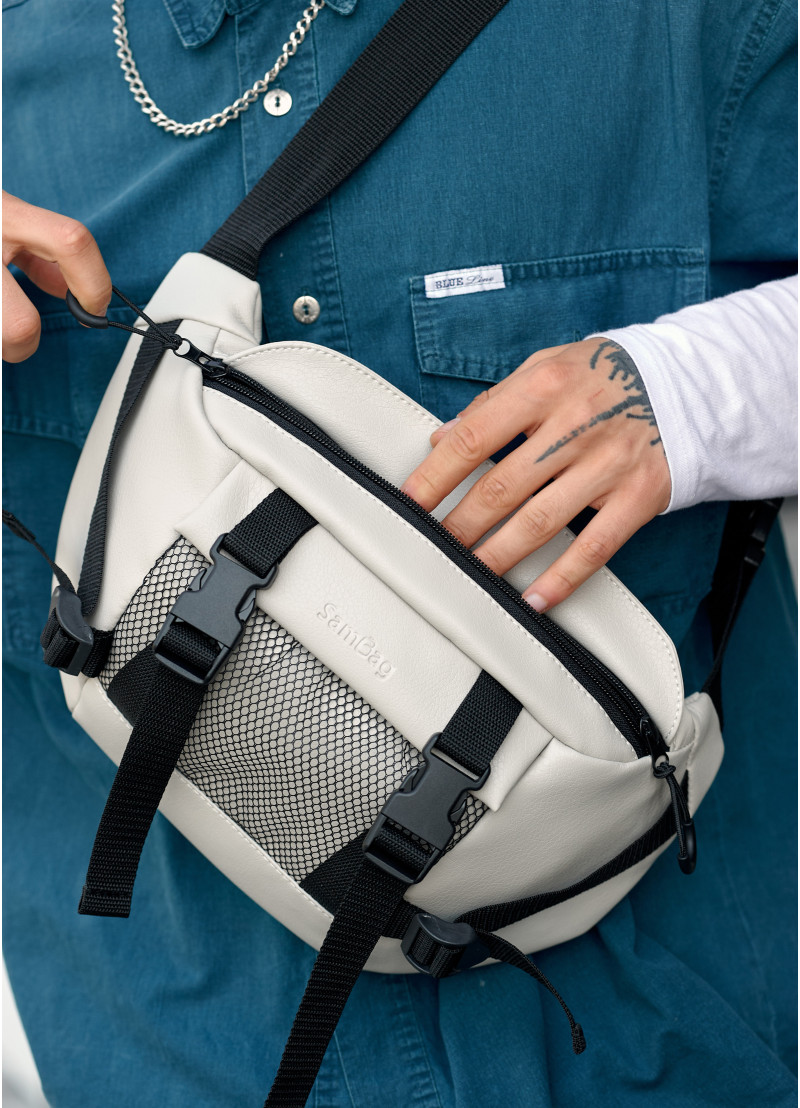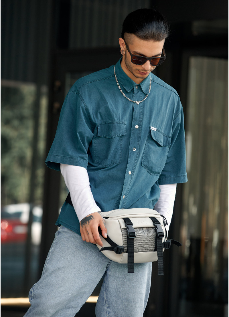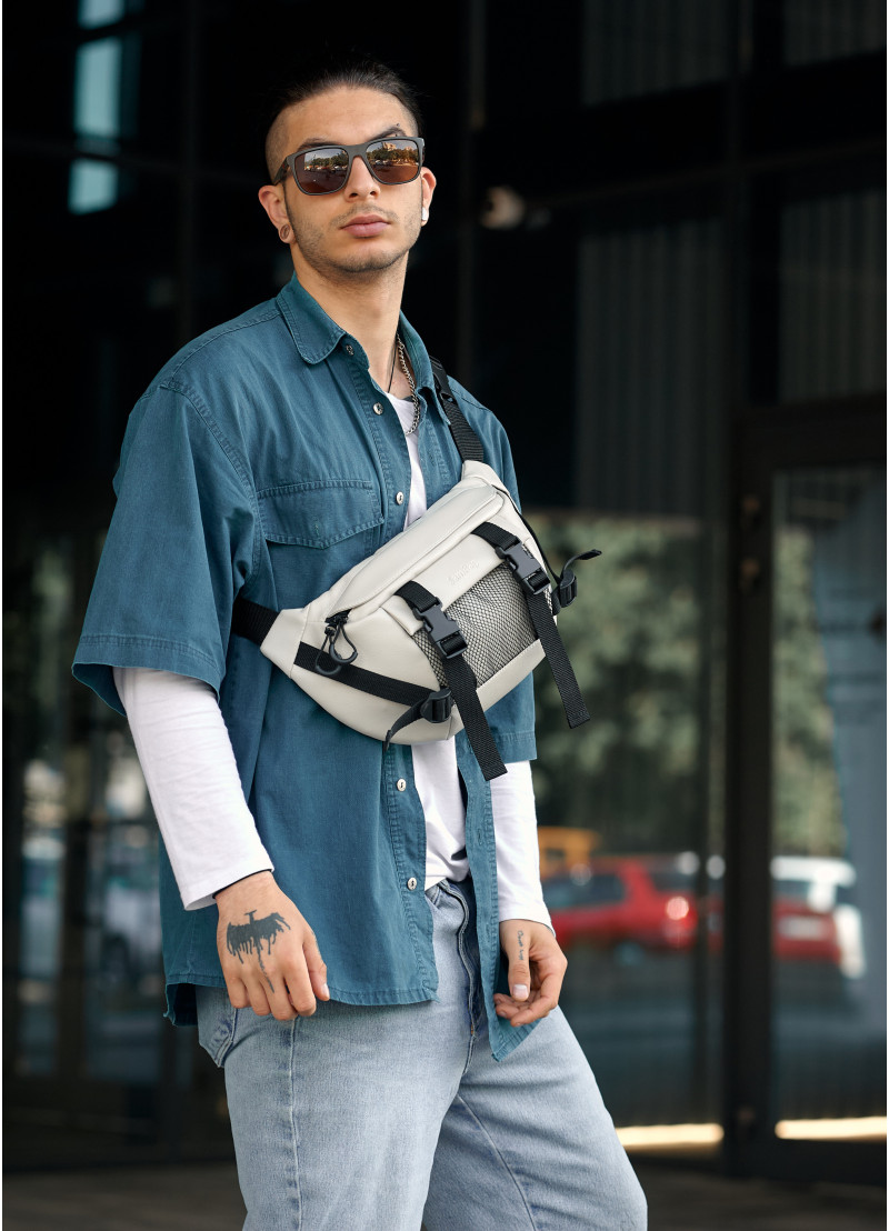 Чоловіча сумка-бананка Sambag Dynamicdart сірого кольору має 9 відділень та виконана з якісного поліестеру. В середині підкладка з матеріалу оксфорд. Сумка має якісну пластикову блискавку з металевими бігунками з фіксаторами, тому самостійно сумка відкриватись не буде. Окрім основого відділення бананка має дві відкриті кишені, одну велику кишеню на блискавці в якій ще три відкриті кишені. На зовнішній стороні спереду карман із сітки. Позаду бананки дві відкриті кишені. Ремінець регулюється від 86 см до 168 см, завдяки чому її можна зручно носити як поясну сумку, так і як повноцінну через плече.