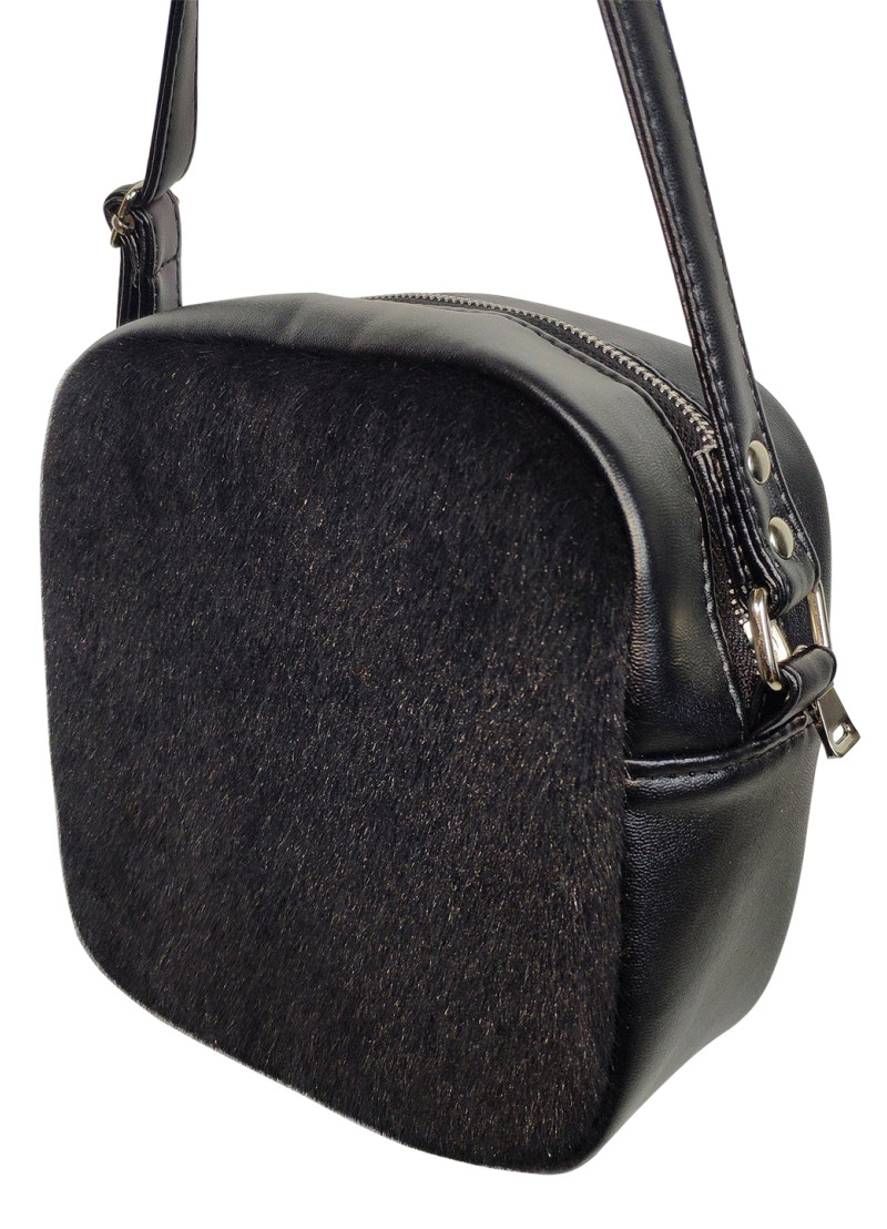 Квадратна жіноча сумка крос-боді Sambag Bale SQB чорного кольору з хутром виконана з якісної екошкіри. Основне відділення сумочки на блискавці та має всередині дві кишені, одну на блискавці та одну відкриту. Матеріал підкладки Оксфорд. Зовні одна додаткова кишеня на блискавці з тильної сторони. У данної сумочки зміцнене тверде дно, що робить її більш практичною та довговічною. Блискавка з надійного пластику, бігунки металеві з фіксаторами, щоб сумка самостійно не відкривалась. Ремінець з екошкіри надійно приєднаний за допомогою металевих кілець. Ремінець регулюється, щоб ви могли підібрати свою ідеальну довжину.