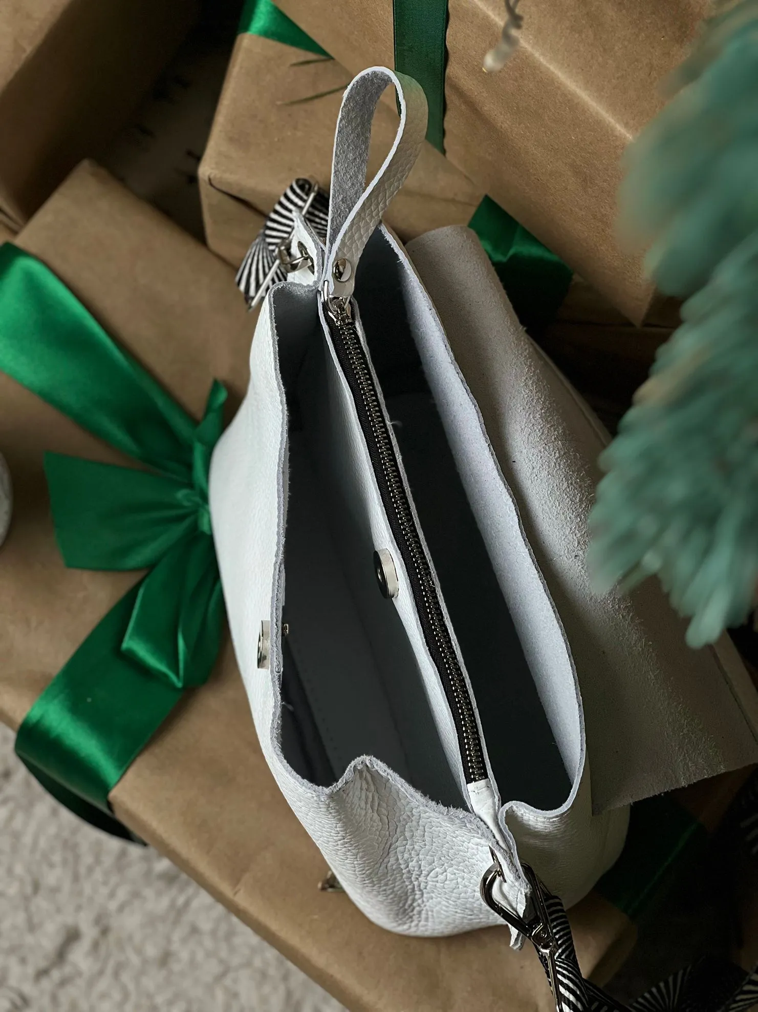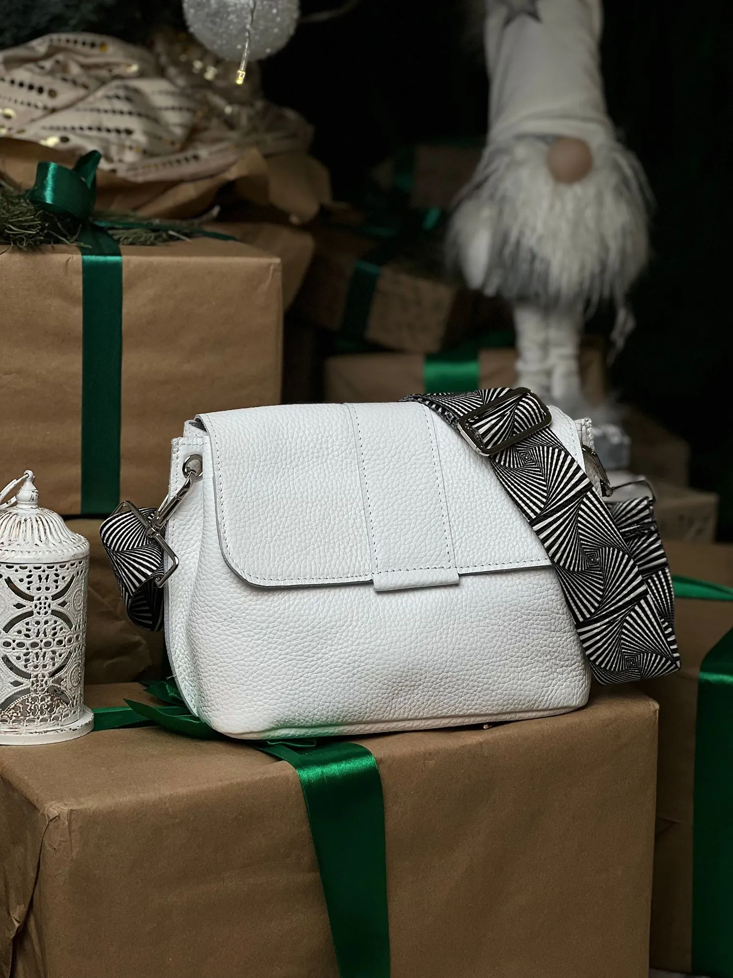 Жіноча сумка крос-боді Miros Марокко білого кольору виконана з натуральної шкіри флотар. Сумка оснащена якісною металевою фурнітурою. Має три відділення, одне відкрите, одне на металевій блискавці та одне на кнопці. Закривається сумка також на кнопку. Ремінець регулюється від 80 см до 115 см. Завдяки такій стильній жіночій сумочці ви будете виділятись серед натовпу і мати із собою завжди все необхідне.