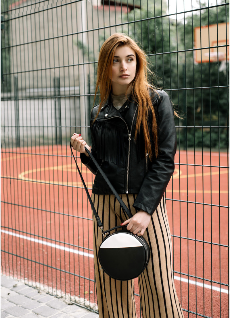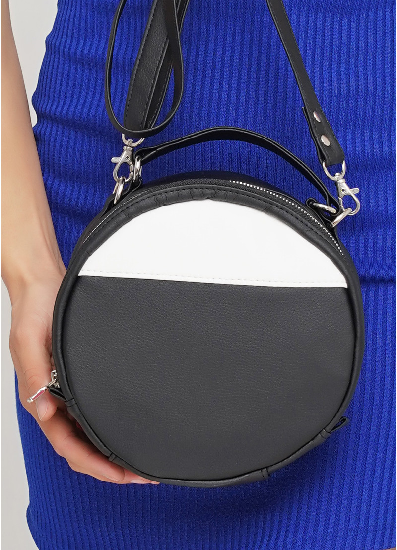 Кругла жіноча сумка крос-боді Sambag Bale чорного кольору з білою вставкою виконана з якісної екошкіри. Має одне основне відділення на блискавці всередині якого дві кишені, одна відкрита та одна на блискавці. Підкладка із матеріалу Оксфорд. Також є додаткова зовнішня кишеня з тильної сторони на блискавці. Сумка оснащена металевою фурнітурою. Дно тверде укриіплене. Ручка та ремінець для носіння через плече з надійної екошкіри. Ремінець регулюється та кріпиться до сумки на карабіни, тому його за необхідністю можна зняти.