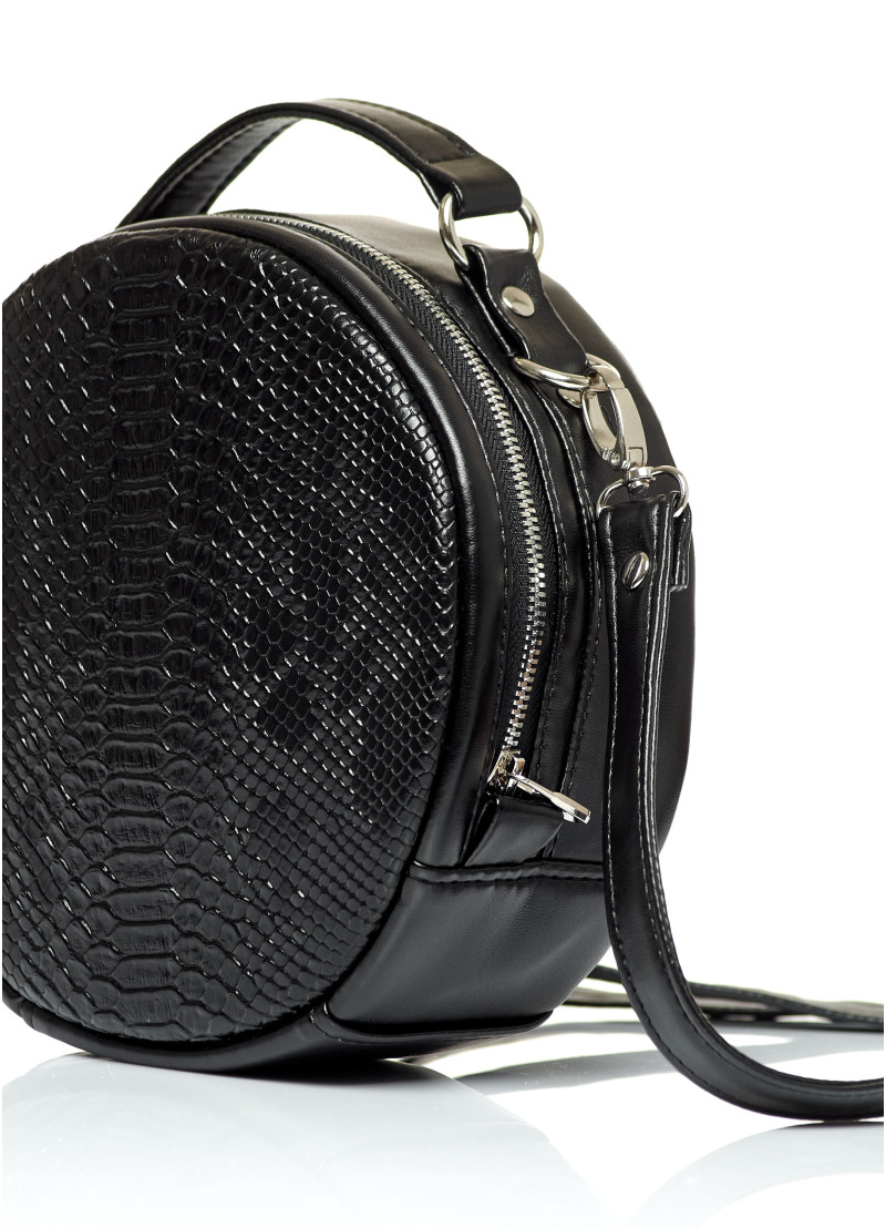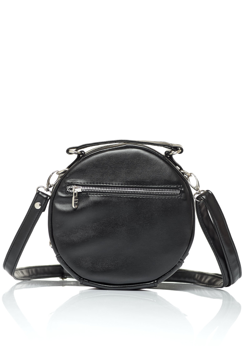 Кругла жіноча сумка крос-боді Sambag Bale чорного кольору виконана з якісної екошкіри. Має одне основне відділення на блискавці всередині якого дві кишені, одна відкрита та одна на блискавці. Підкладка із матеріалу Оксфорд. Також є додаткова зовнішня кишеня з тильної сторони на блискавці. Сумка оснащена металевою фурнітурою. Дно тверде укриіплене. Ручка та ремінець для носіння через плече з надійної екошкіри. Ремінець регулюється та кріпиться до сумки на карабіни, тому його за необхідністю можна зняти.