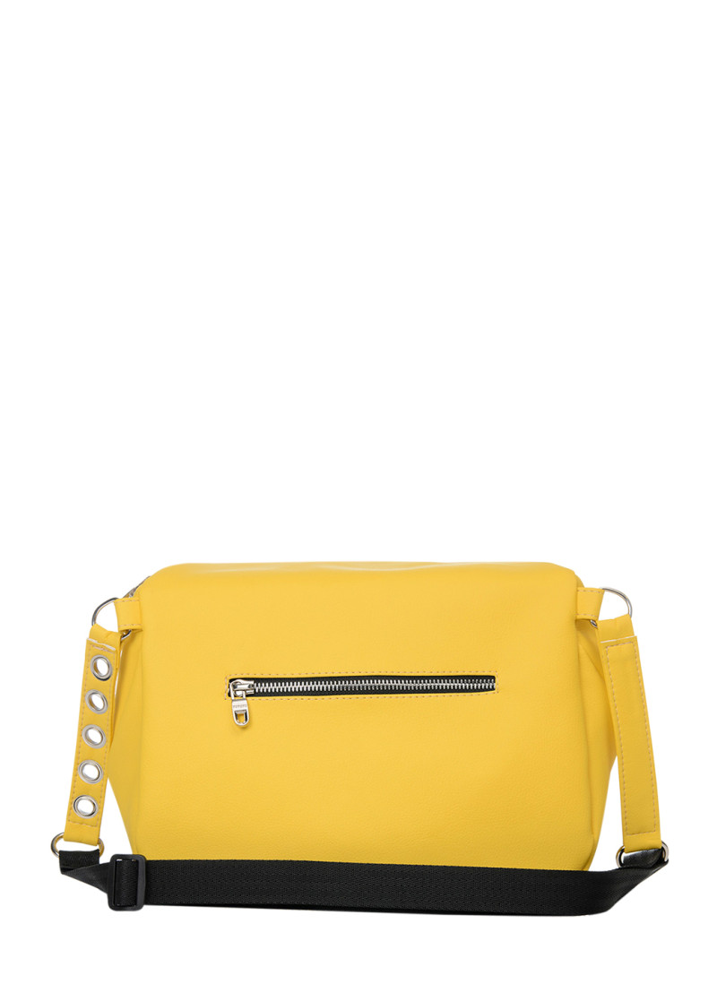 Жіноча сумка крос-боді Sambag Milano жовтого кольору виконана з якісної екошкіри. Основне відділення сумочки на блискавці та має всередині дві кишені, одну на блискавці та одну відкриту. Матеріал підкладки Оксфорд. Зовні одна додаткова кишеня на блискавці з тильної сторони. Блискавка з надійного пластику, бігунки металеві з фіксаторами, щоб сумка самостійно не відкривалась. Ремінець з екошкіри надійно приєднаний за допомогою металевих кілець, він регулюється, а його максимальна довжина 146 см.