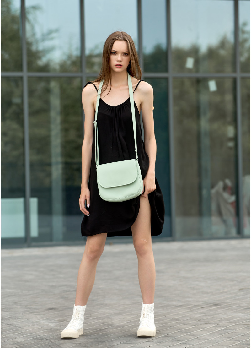 Прямокутна жіноча сумка крос-боді Sambag Rose Bzn м’ятного кольору виконана з якісної екошкіри підвищеного рівня зносостійкості. Шкіра еластична, водовідштовхувальна та стійка до вицвітання. Сумочка застібається на магнітний клапан. Основне відділення на блискавці та в середині поділене на два відділення. Підкладка із матеріалу Оксфорд. Також є додаткова зовнішня кишеня з тильної сторони на блискавці. Сумка оснащена металевою фурнітурою. Ремінець регулюється, а його максимальна довжина складає 146 см.