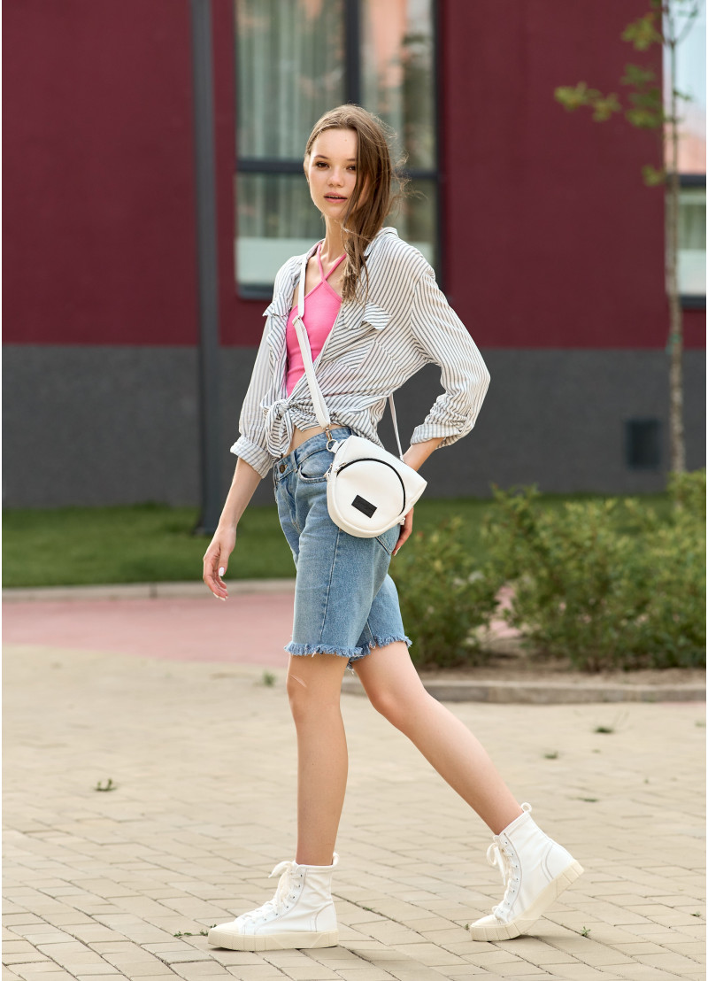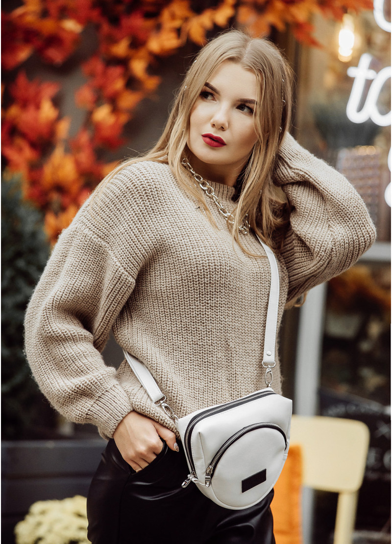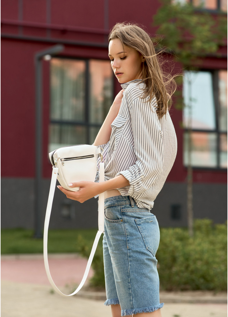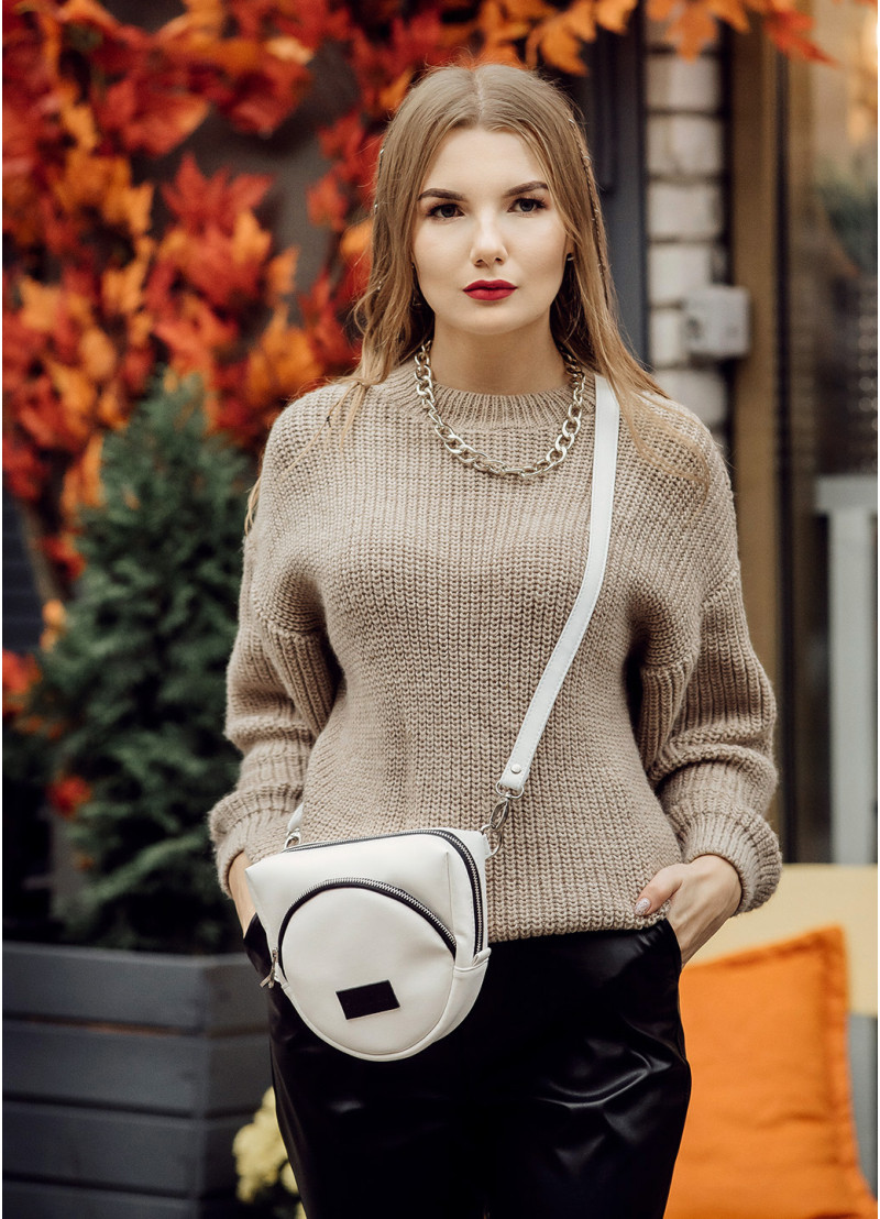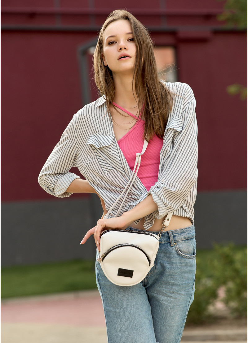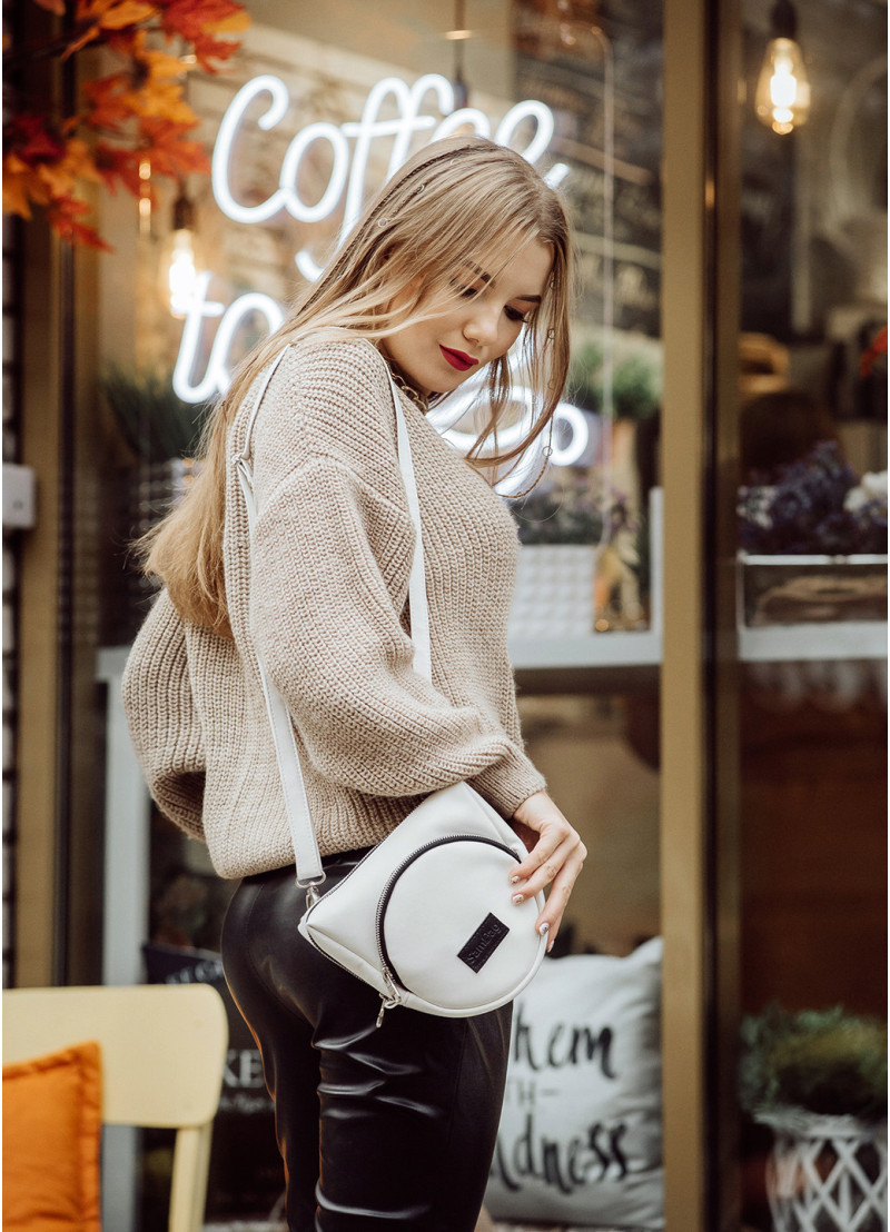 Жіноча сумка крос-боді Sambag Rose білого кольору виконана з якісної екошкіри. Основне відділення сумочки на блискавці та поділене на декілька кишень. Матеріал підкладки Оксфорд. Зовні дві додаткові кишені на блискавці з тильної та лицевої сторони. Фурнітура металева, блискавки з фіксаторами, щоб сумка самостійно не відкривалась. Ремінець регулюється, а його довжина 150 см.