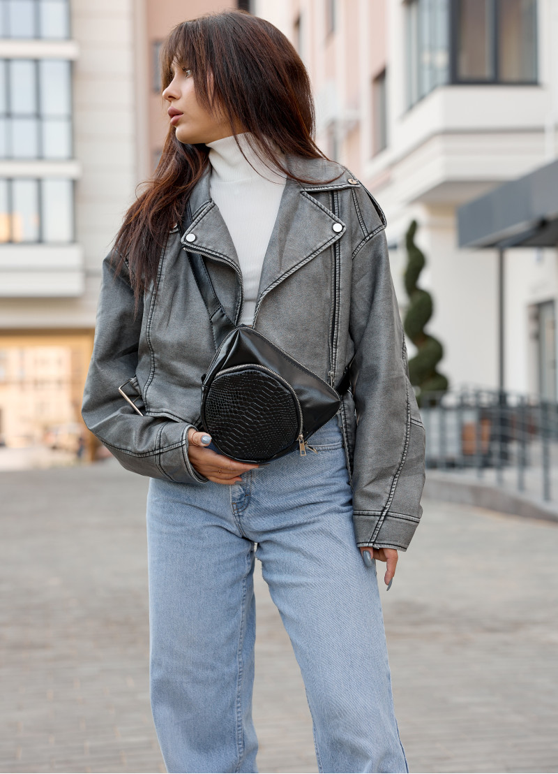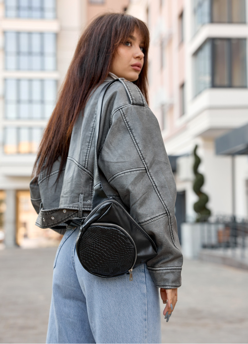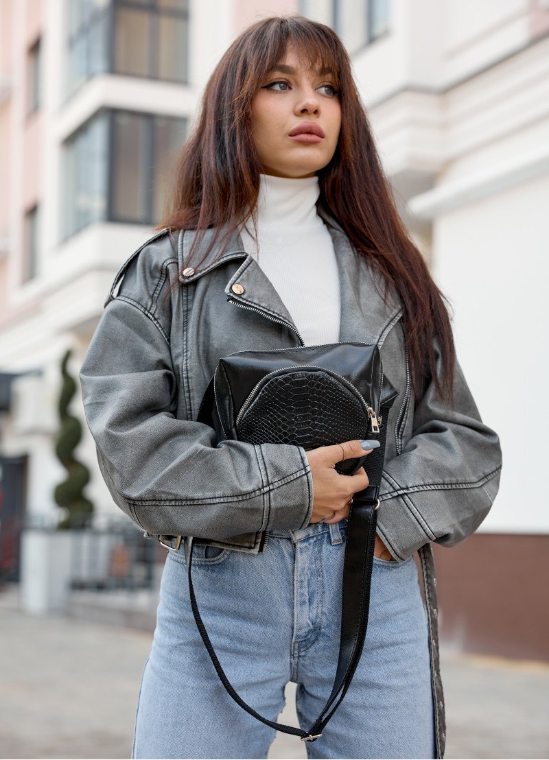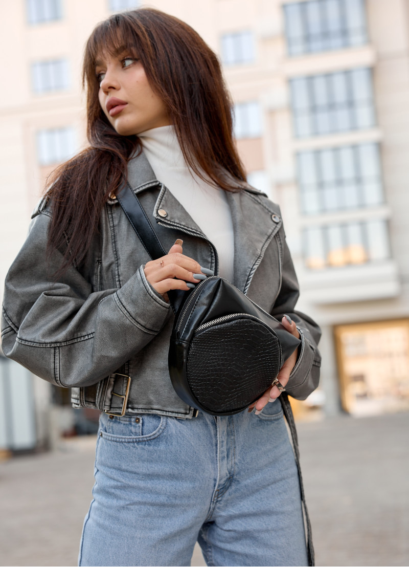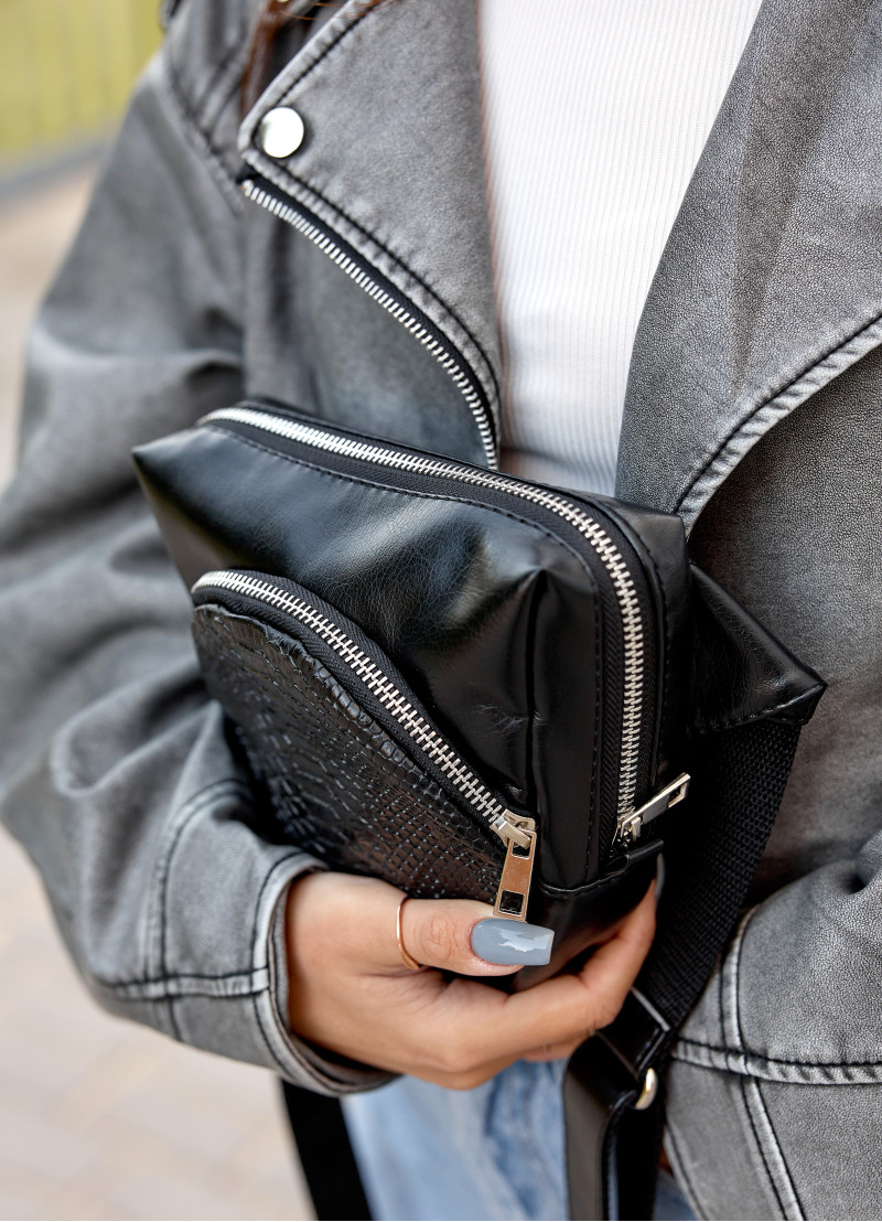Жіноча сумка крос-боді Sambag Rose чорного кольору з принтом крокодил виконана з якісної екошкіри. Основне відділення сумочки на блискавці та поділене на декілька кишень. Матеріал підкладки Оксфорд. Зовні дві додаткові кишені на блискавці з тильної та лицевої сторони. Фурнітура металева, блискавки з фіксаторами, щоб сумка самостійно не відкривалась. Ремінець регулюється, а його довжина 150 см.