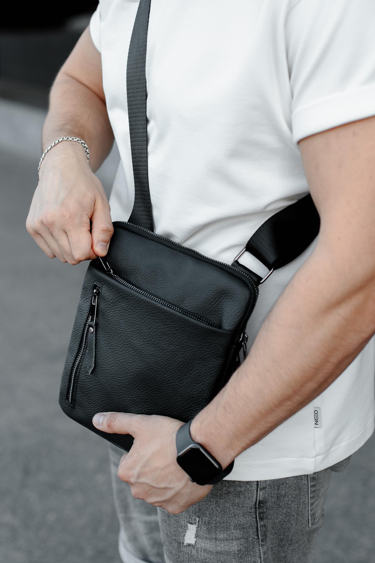 Чоловіча сумка месенджер Skill Karter чорного кольору виконана з натуральної шкіри. Сумка містка та має багато відділень. Основне відділення на металевій блискавці, всередині одна відкрита кишеня. Додаткові три кишені на блискавці з лицевої, бічної та тильної сторони. Ремінець регулюється, максимальна довжина 145 см. Сумка мессенджер підійде вам, якщо потрібно завжди мати з собою дрібні речі, такі як телефон, ключі, документи тощо.