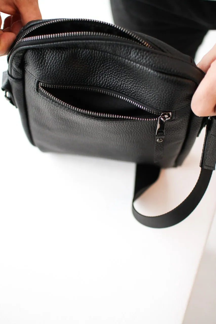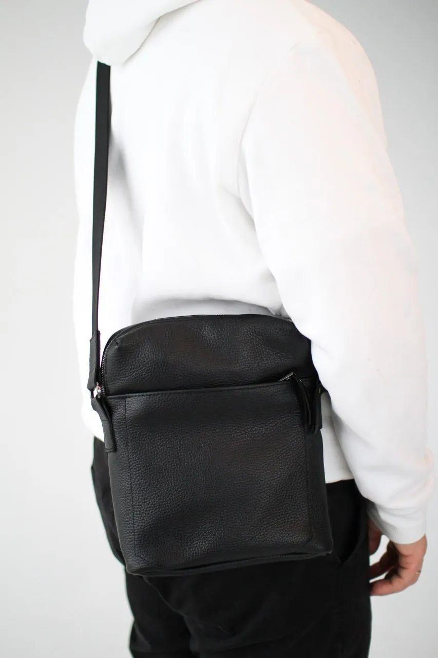 Чоловіча сумка месенджер Skill Tablet чорного кольору виконана з натуральної шкіри. Сумка містка та має багато відділень. Основне відділення на металевій блискавці, всередині одна відкрита кишеня та кишеня на блискавці. Додаткові дві кишені з лицевої та тильної сторони на блискавці. Ремінець регулюється, максимальна довжина 145 см. Сумка мессенджер підійде вам, якщо потрібно завжди мати з собою дрібні речі, такі як телефон, ключі, документи тощо.