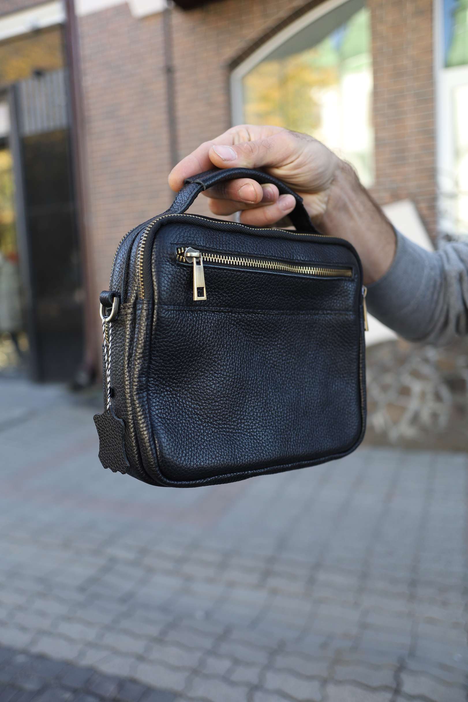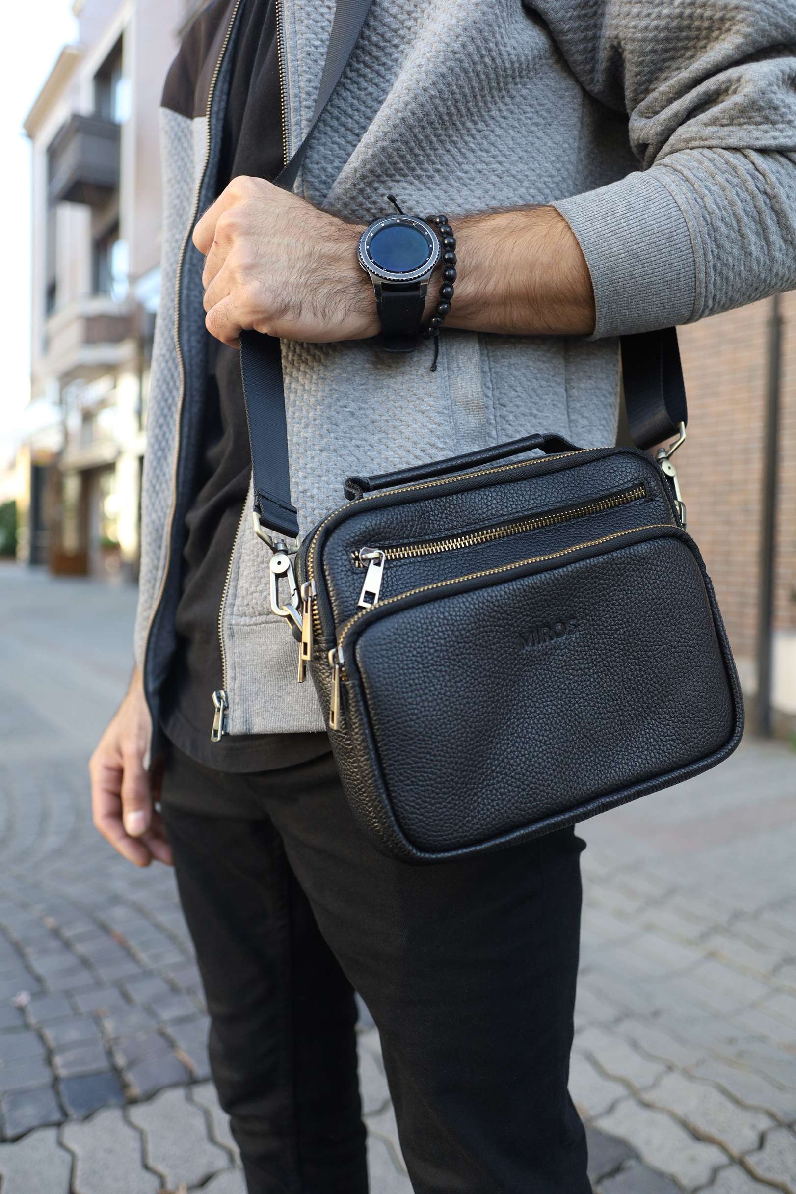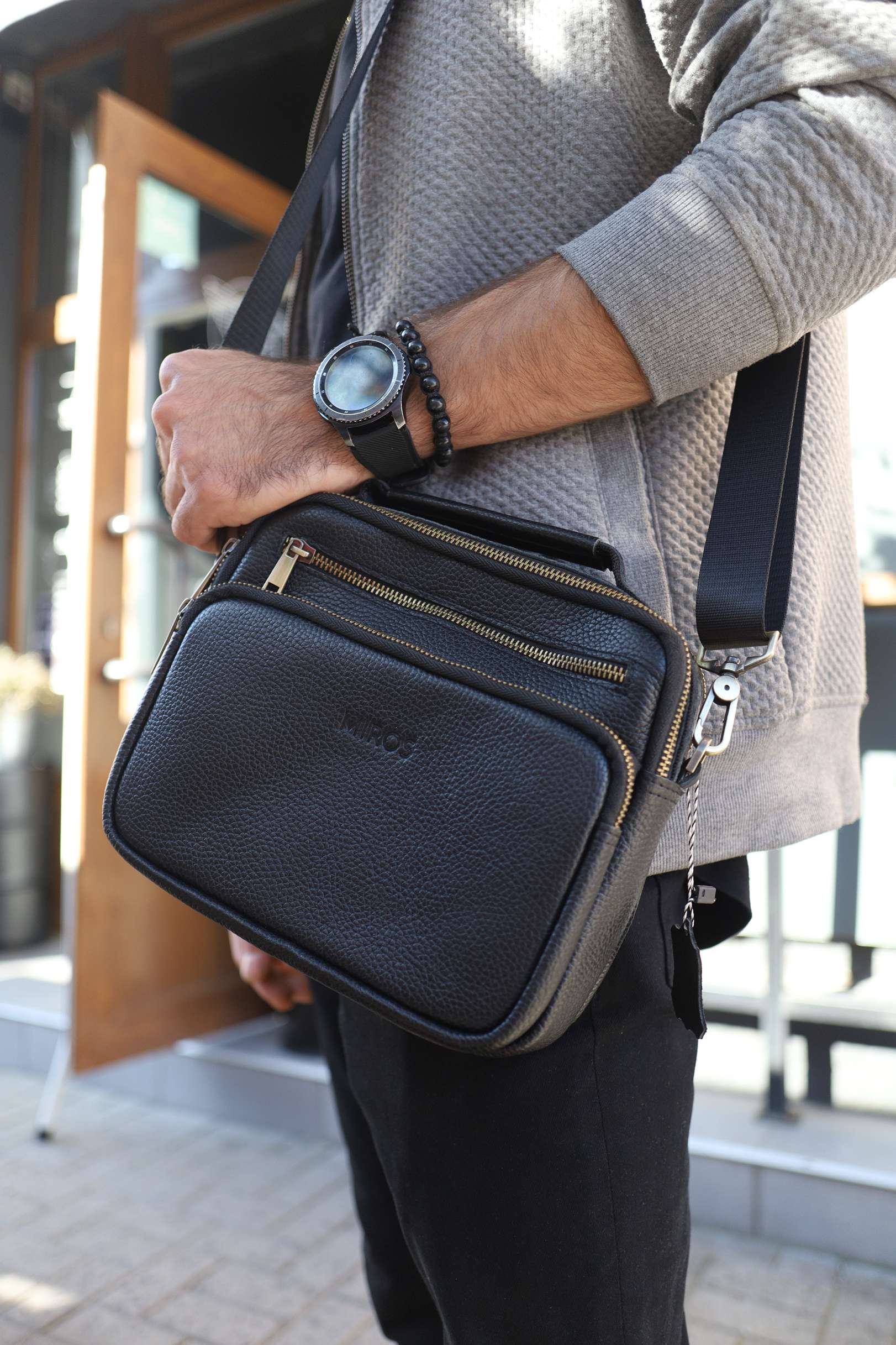 Чоловіча сумка месенджер Miros Амстердам чорного кольору з бронзовою блискавкою виконана з натуральної шкіри. Сумка має текстильний ремінець, завдяки якому її можна зручно носити на плечі, а також шкіряну ручку. Перевага даної моделі полягає в тому, що вона має багато відділень.