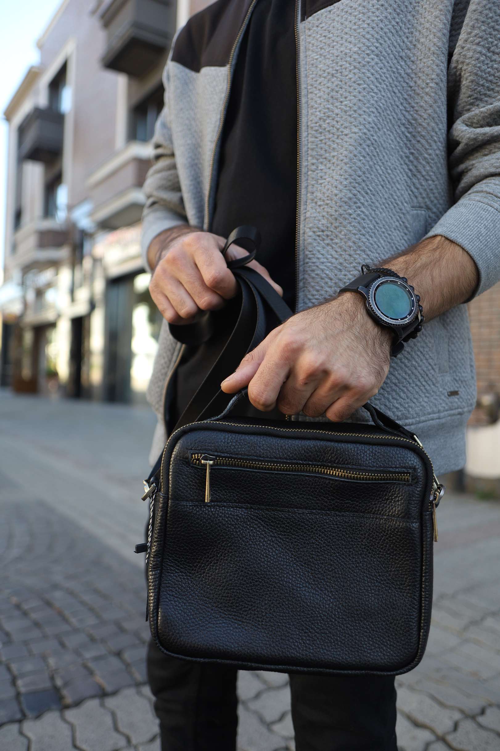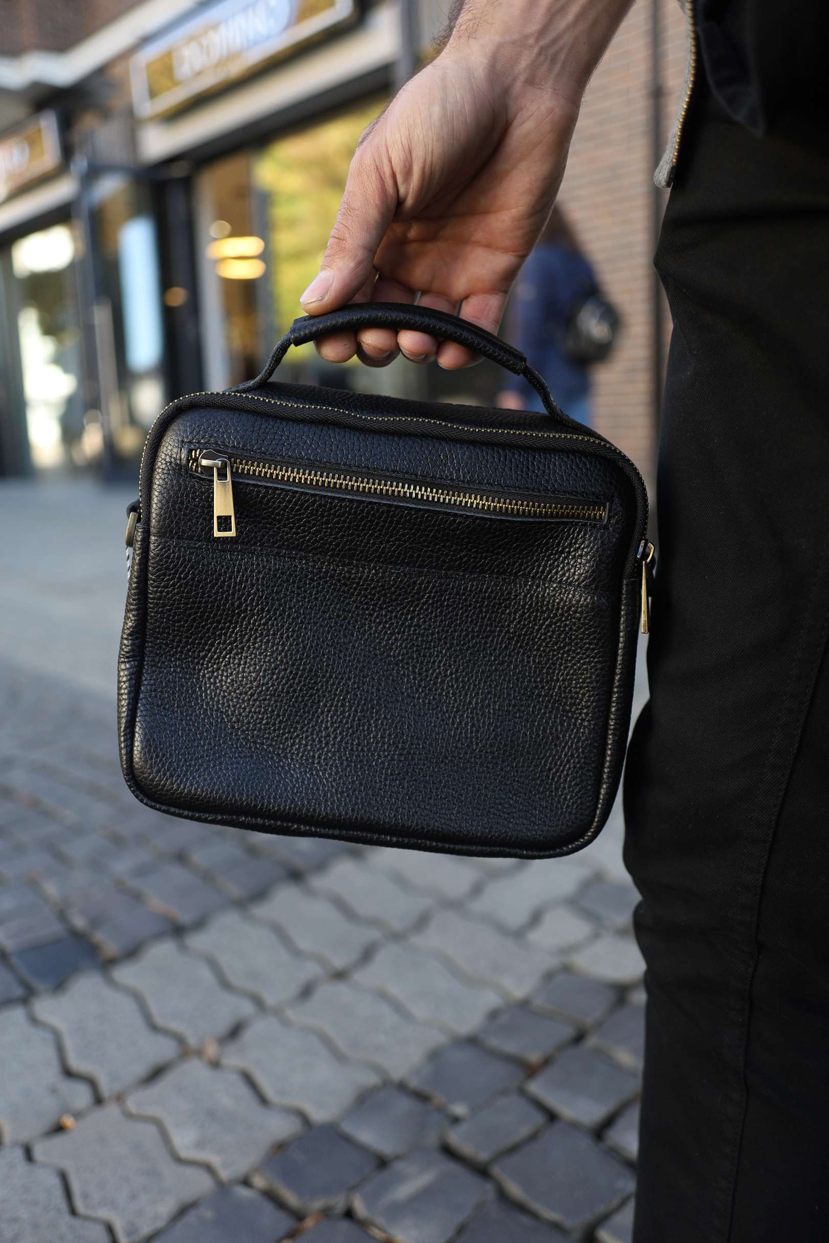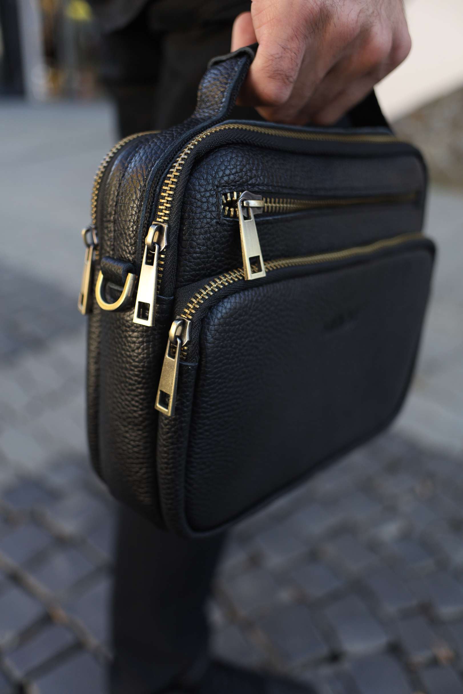 Чоловіча сумка месенджер Miros Амстердам чорного кольору з бронзовою блискавкою виконана з натуральної шкіри. Сумка має текстильний ремінець, завдяки якому її можна зручно носити на плечі, а також шкіряну ручку. Перевага даної моделі полягає в тому, що вона має багато відділень.
