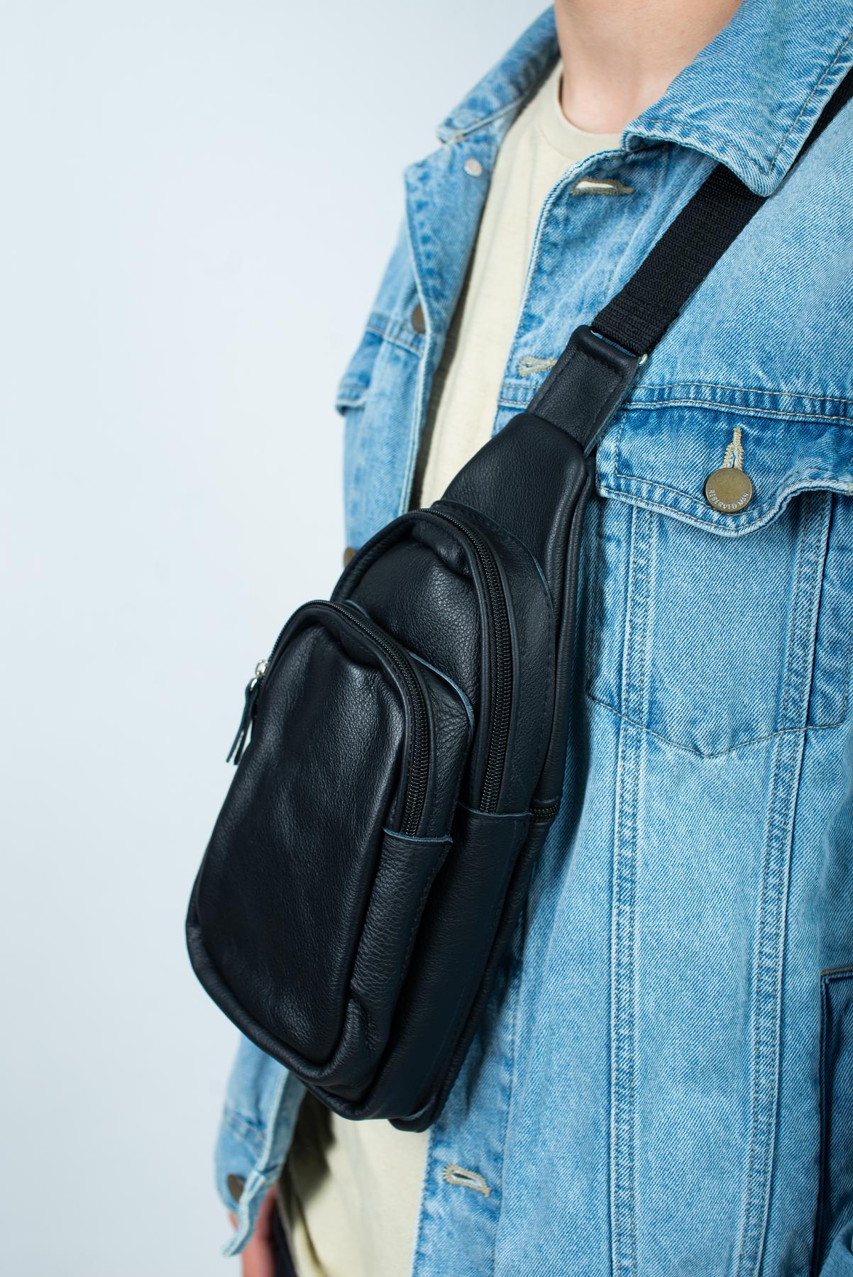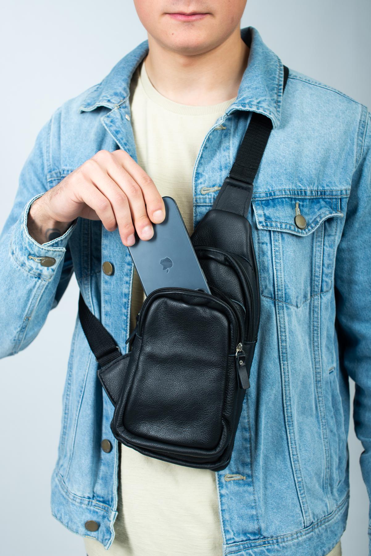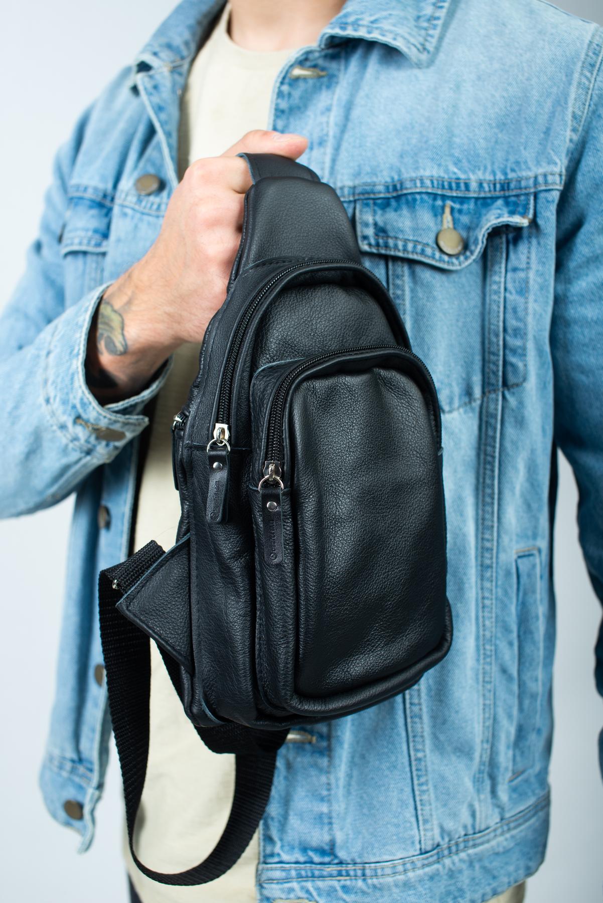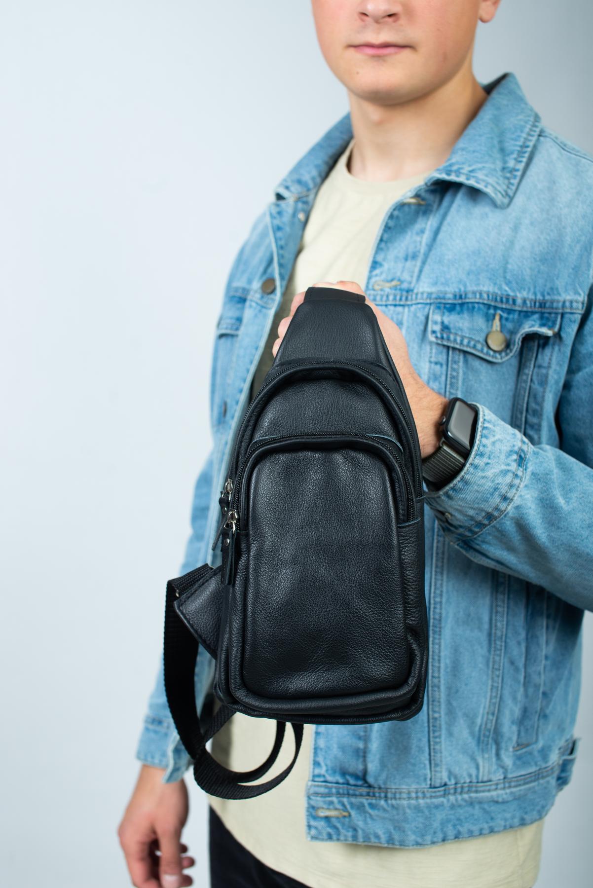 Чоловіча слінг сумка Skill чорного кольору виконана з натуральної шкіри. Одне основне відділення на блискавці, додаткове відділення на лицьовій стороні та одна кишеня на блискавці на тильній стороні. Максимальна довжина ремінця 125 см. Слінг сумка підійде чоловікам, які постійно в русі та при цьому завжди хочуть виглядати стильно.