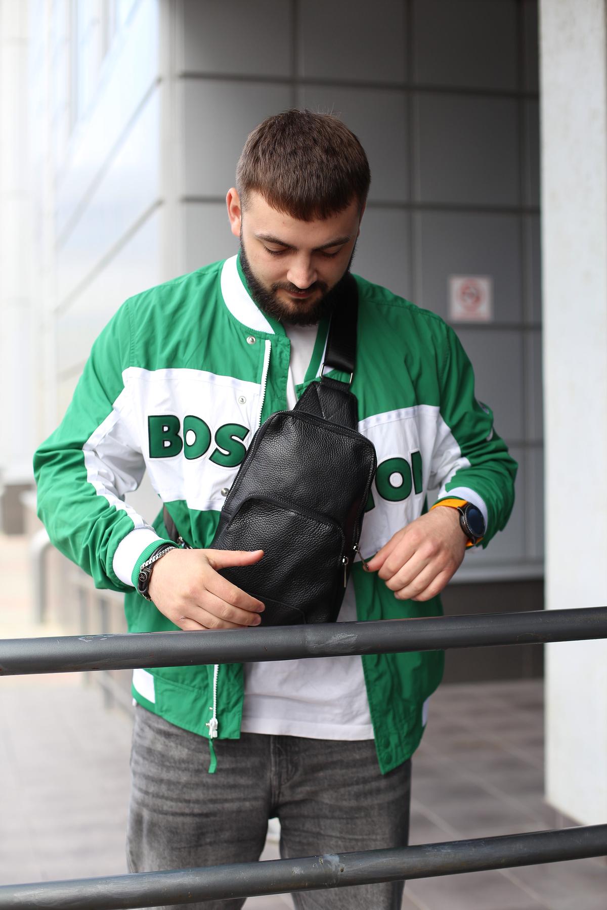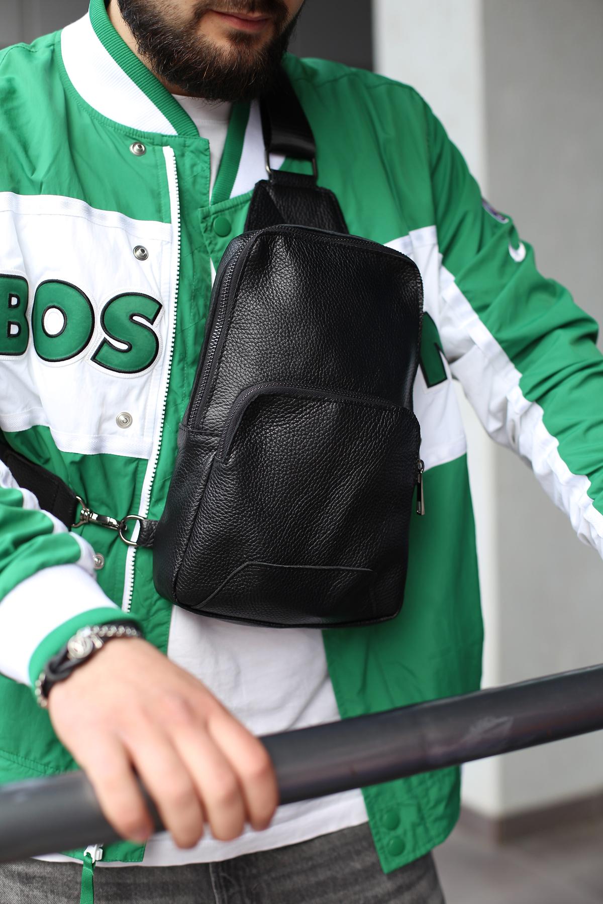 Чоловіча слінг сумка Skill Kved чорного кольору виконана з натуральної шкіри. Основне відділення на металевій блискавці, всередині одна відкрита кишеня. Додаткове відділення з лицевої сторони на блискавці. Знизу по боках два металевих кільця за які можна чіпляти ремінець, та носити сумку в різних положеннях. Максимальна довжина ремінця 140 см. Слінг сумка підійде чоловікам, які постійно в русі та при цьому завжди хочуть виглядати стильно.
