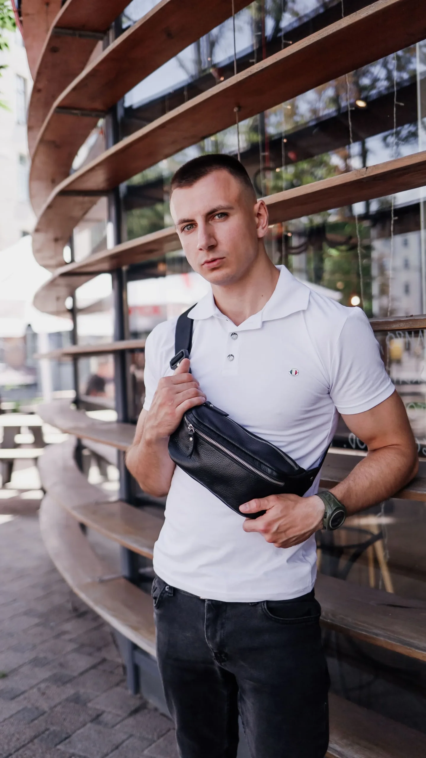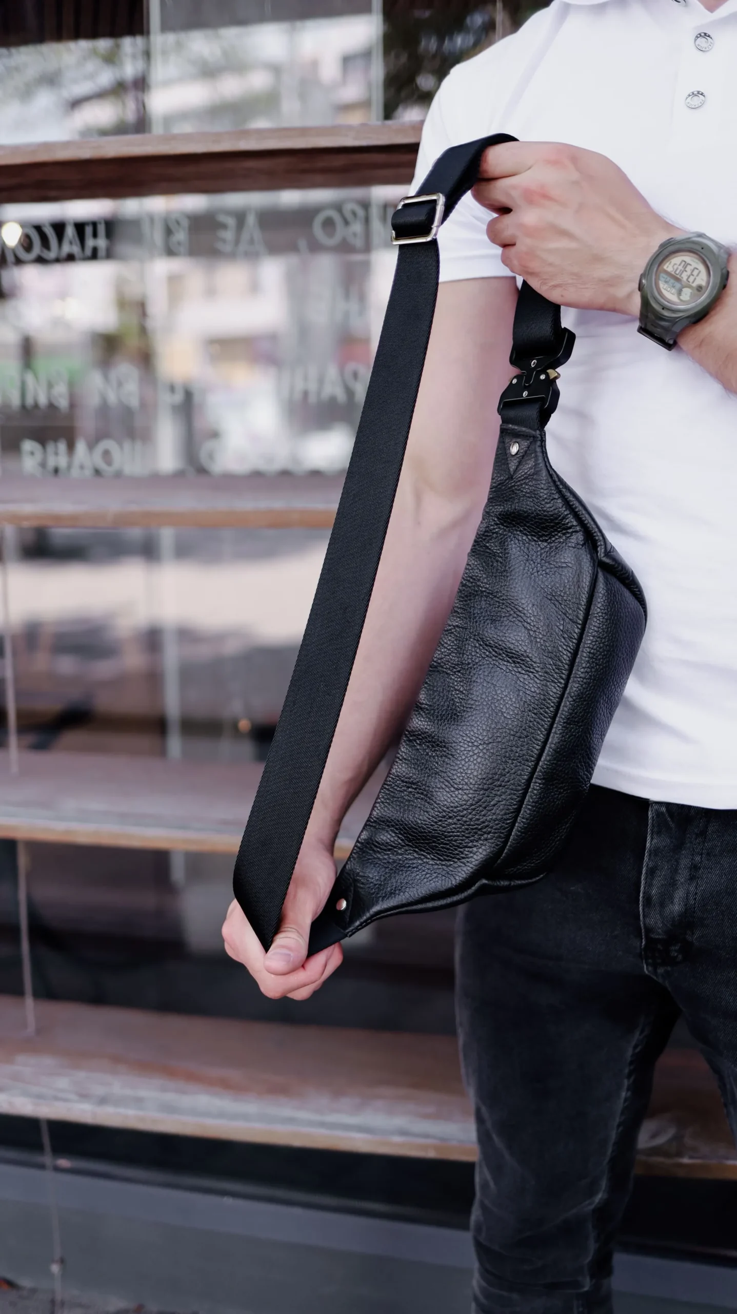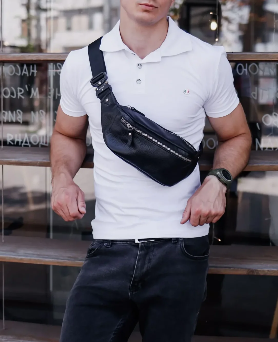Бананка мужская Miros Brooklyn черного цвета выполнена из натуральной кожи флотар, которая обладает водоотталкивающими свойствами. Внутри текстильная подкладка. Подкладка берет на себя погрузку, благодаря чему срок службы бананки значительно увеличивается. Она имеет качественные металлические молнии с металлическими бегунками с фиксаторами. Сумка имеет одно основное отделение и дополнительное спереди для телефона или других вещей. Ремешок со скоростной клипсой регулируется от 80 до 140 см, благодаря чему ее можно удобно носить как на поясе, так и на плече.
