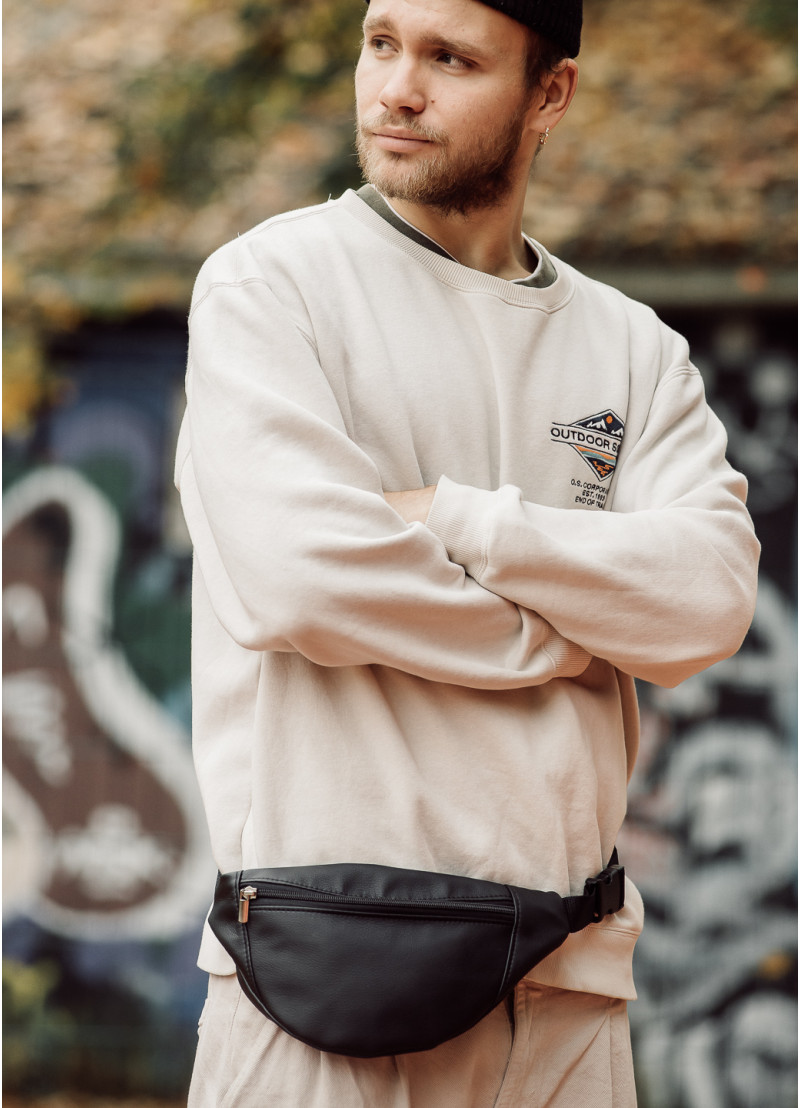 Мужская бананка Sambag Soho Bsh черного цвета изготовлена из искусственной кожи. Она имеет текстильную водоотталкивающую подкладку, которая также берет на себя нагрузку, благодаря чему значительно увеличивается срок эксплуатации. Внутри основное отделение с дополнительными карманами. Оснащена пластиковой молнией и бегунками с фиксаторами. Ремешок регулируется от 91 до 130 см.