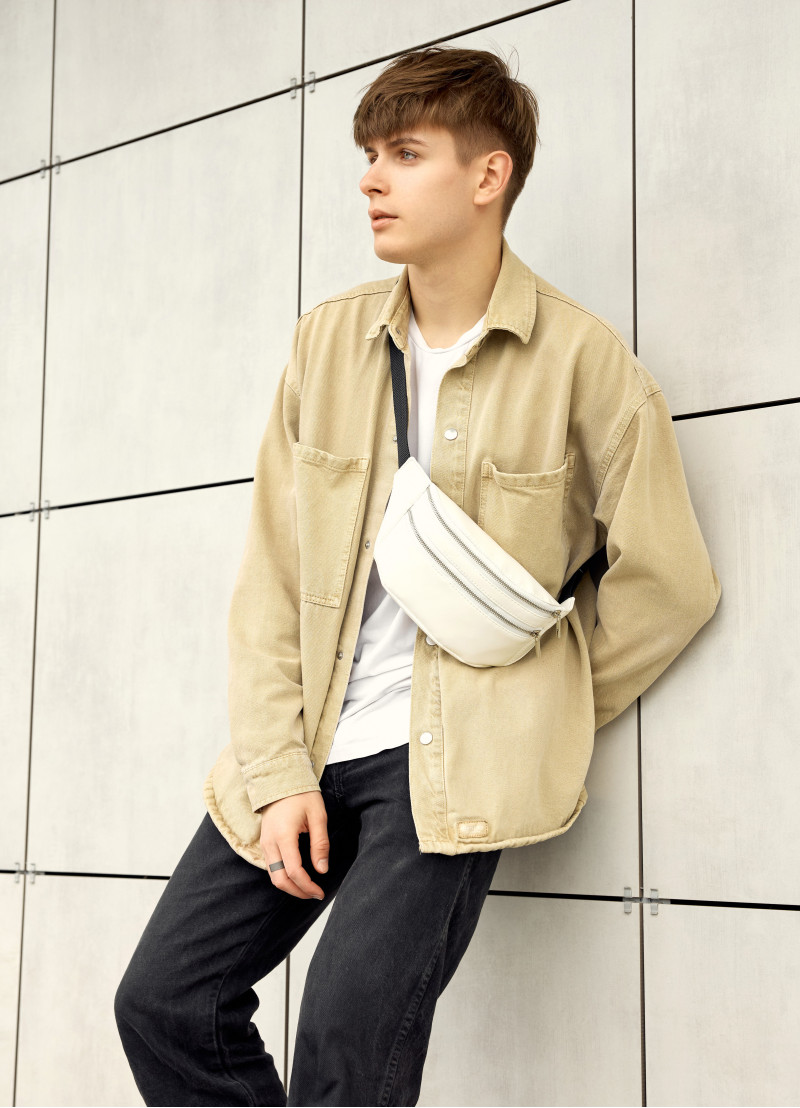 Мужская бананка Sambag Tirso Lts белого цвета выполнена из экокожи. В середине подкладка из материала Оксфорд. Подкладка берет на себя нагрузку, благодаря чему срок службы бананки значительно увеличивается. Основное и дополнительные отделения спереди и сзади бананки на металической молнии с металлическими бегунками с фиксаторами, поэтому сумка самостоятельно открываться не будет. Внутри сумки несколько карманов. Ремешок регулируется от 86 см до 123 см, благодаря чему ее можно удобно носить как на поясе, так и через плечо.