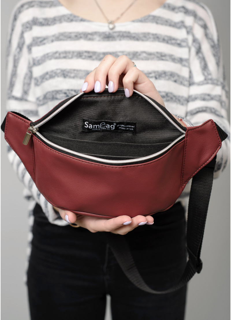 Женская бананка Sambag Tirso Mssp бордового цвета выполнена из экокожи. В середине подкладка из материала Оксфорд. Подкладка берет на себя нагрузку, благодаря чему срок службы бананки значительно увеличивается. Она имеет качественную пластиковую молнию с металлическими бегунками с фиксаторами, поэтому сумка самостоятельно открываться не будет. Сзади бананка имеет дополнительное отделение на молнии. Внутри сумки несколько карманов. Ремешок регулируется от 86 см до 123 см, благодаря чему ее можно удобно носить как на поясе, так и через плечо.