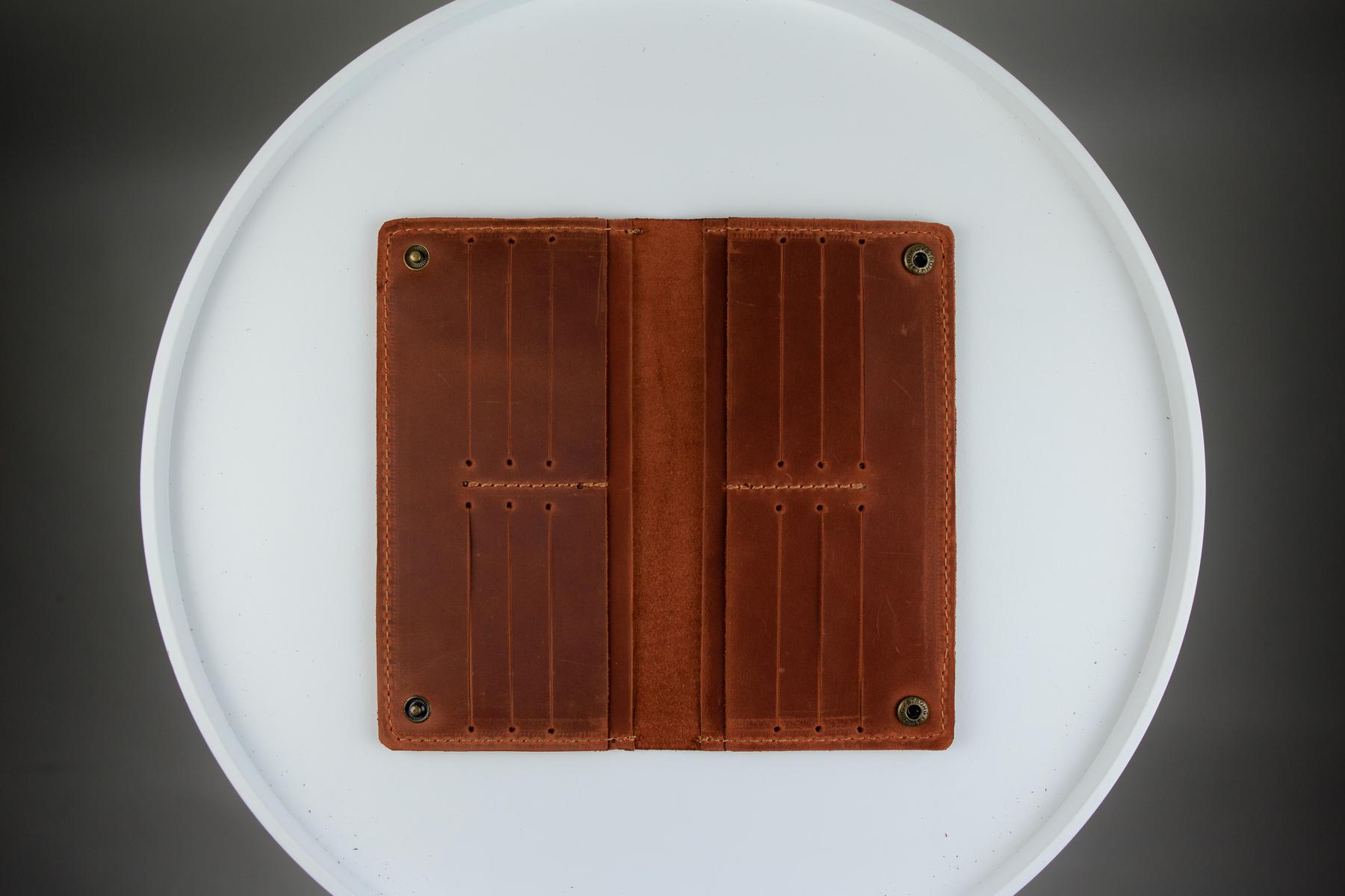 Мужское портмоне Skill Crazy Horse коричневого цвета изготовлено из натуральной кожи. Портмоне застегивается на металлические кнопки, имеет два основных отделения для купюр и 12 ячеек для карточек.