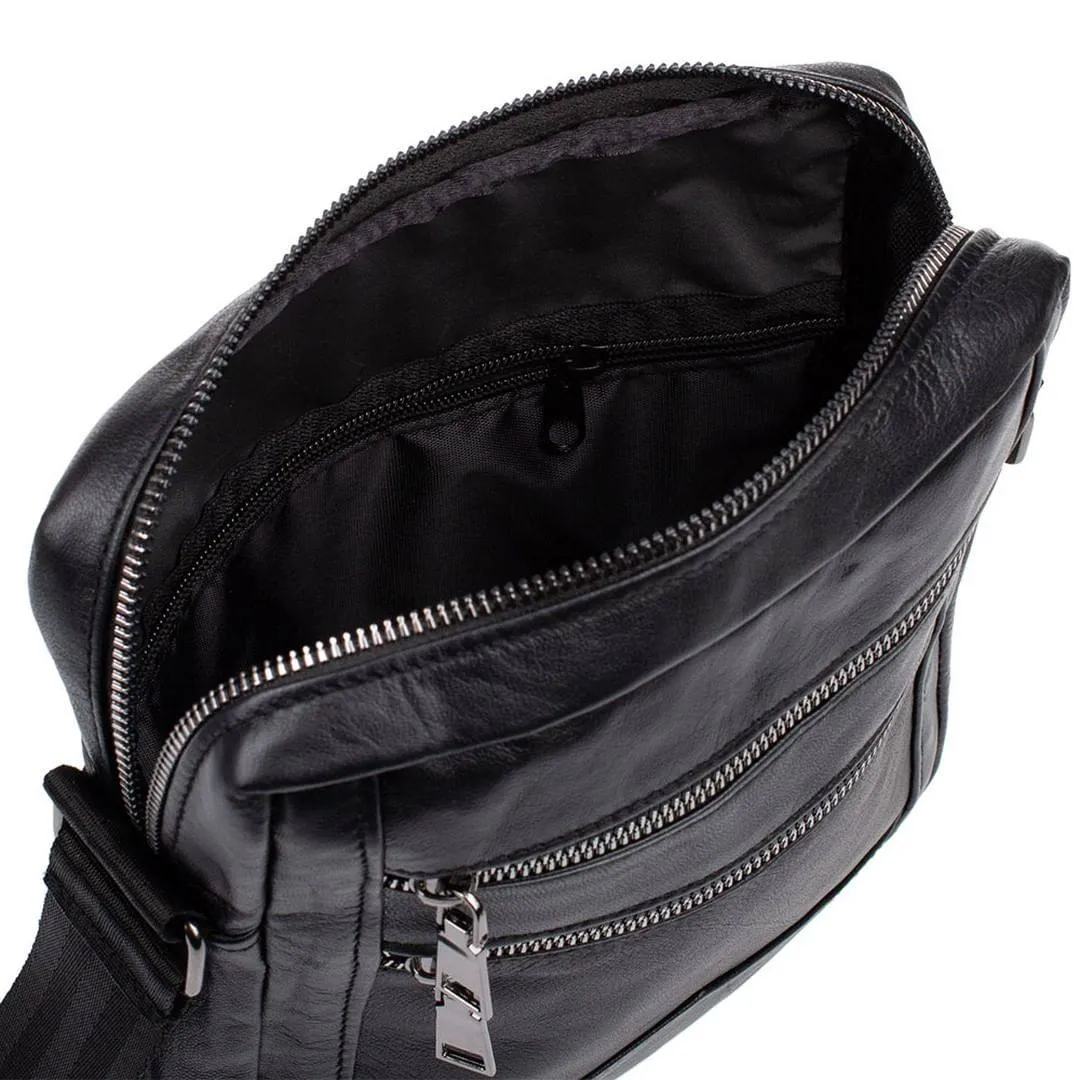 Мужская сумка мессенджер Skill черного цвета выполнена из натуральной кожи. Основное отделение на пластиковой молнии, внутри один открытый карман. С лицевой стороны два кармана на молнии. С тыльной стороны одно дополнительное отделение на молнии. Ремешок регулируется, максимальная длина 130 см. Сумка мессенджер подойдет вам, если нужно всегда иметь с собой мелкие вещи, такие как телефон, ключи, документы и т.д.