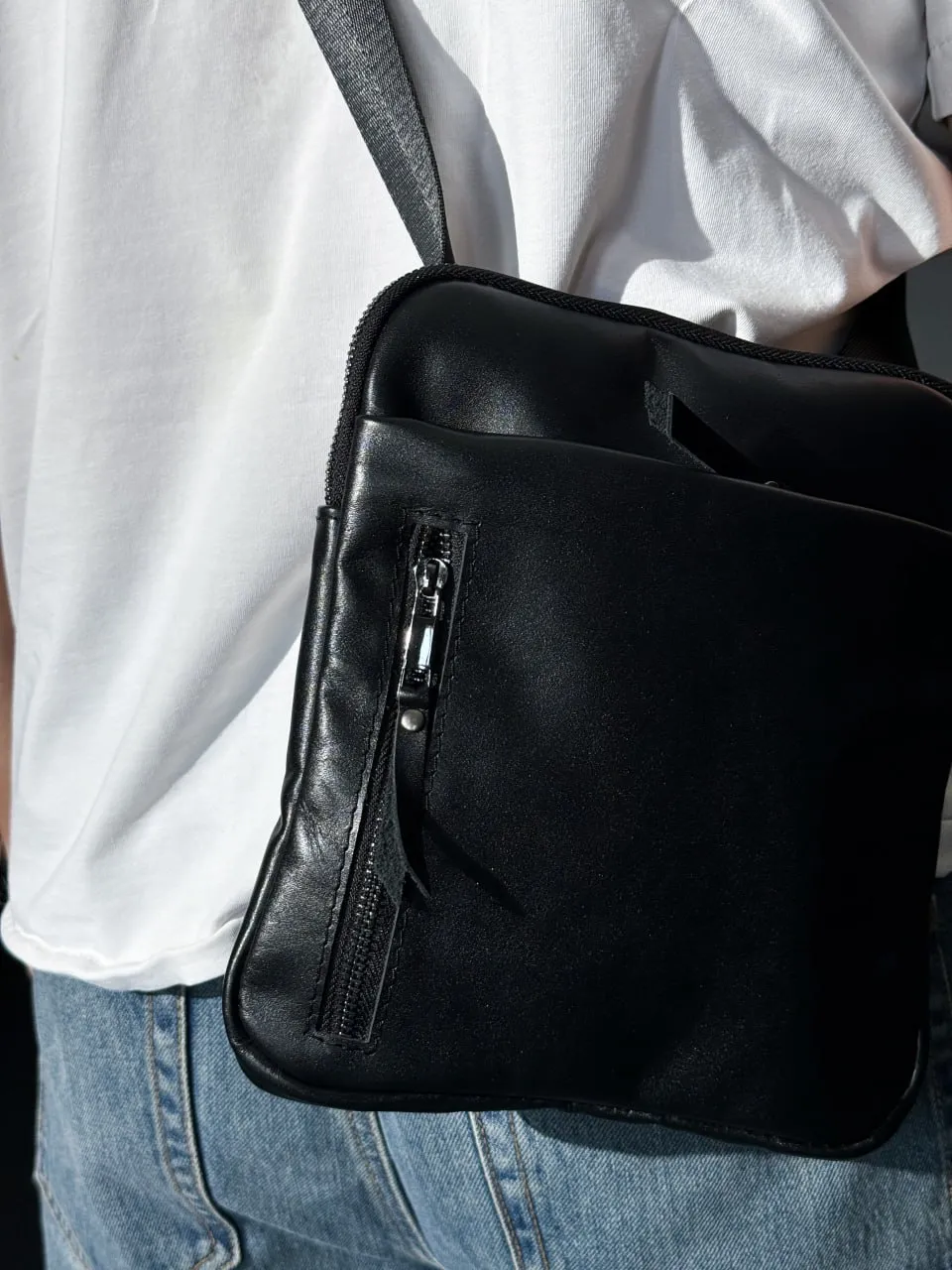 Мужская сумка мессенджер Skill черного цвета выполнена из натуральной гладкой кожи. Сумка имеет качественную металлическую фурнитуру и надежный текстильный ремешок, благодаря которому сумку можно удобно носить через плечо.