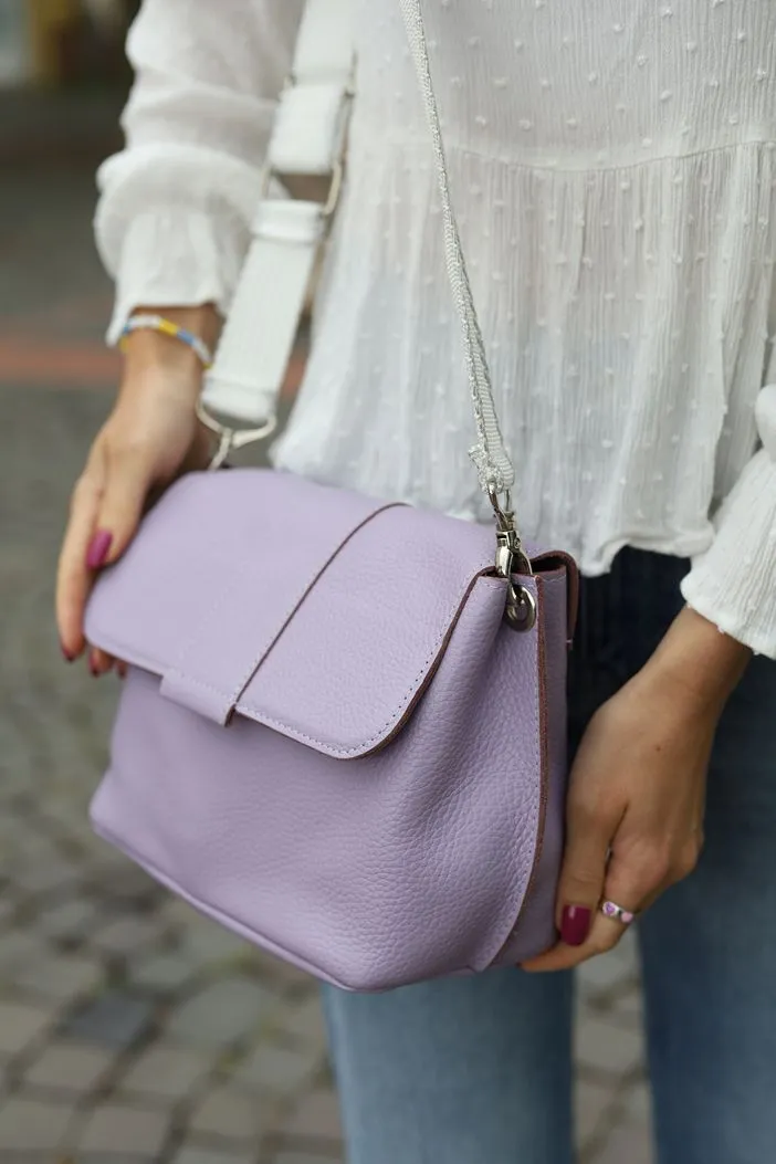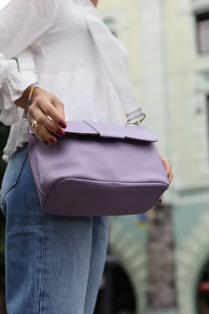 Женская сумка кросс-боди Miros Марокко фиолетового цвета выполнена из натуральной кожи флотар. Сумка снабжена качественной металлической фурнитурой. Есть три отделения, одно открытое, одно на металлической молнии и одно на кнопке. Закрывается сумка также на кнопку. Ремешок регулируется от 80 см до 115 см. Благодаря такой стильной дамской сумочке вы будете выделяться среди толпы и иметь с собой всегда все необходимое.
